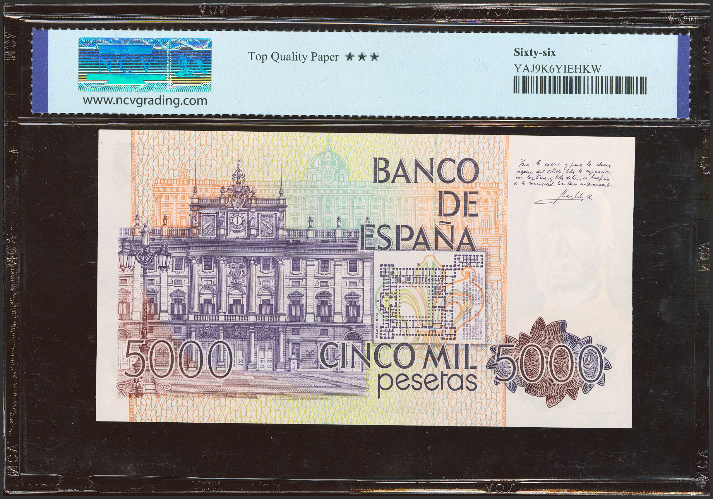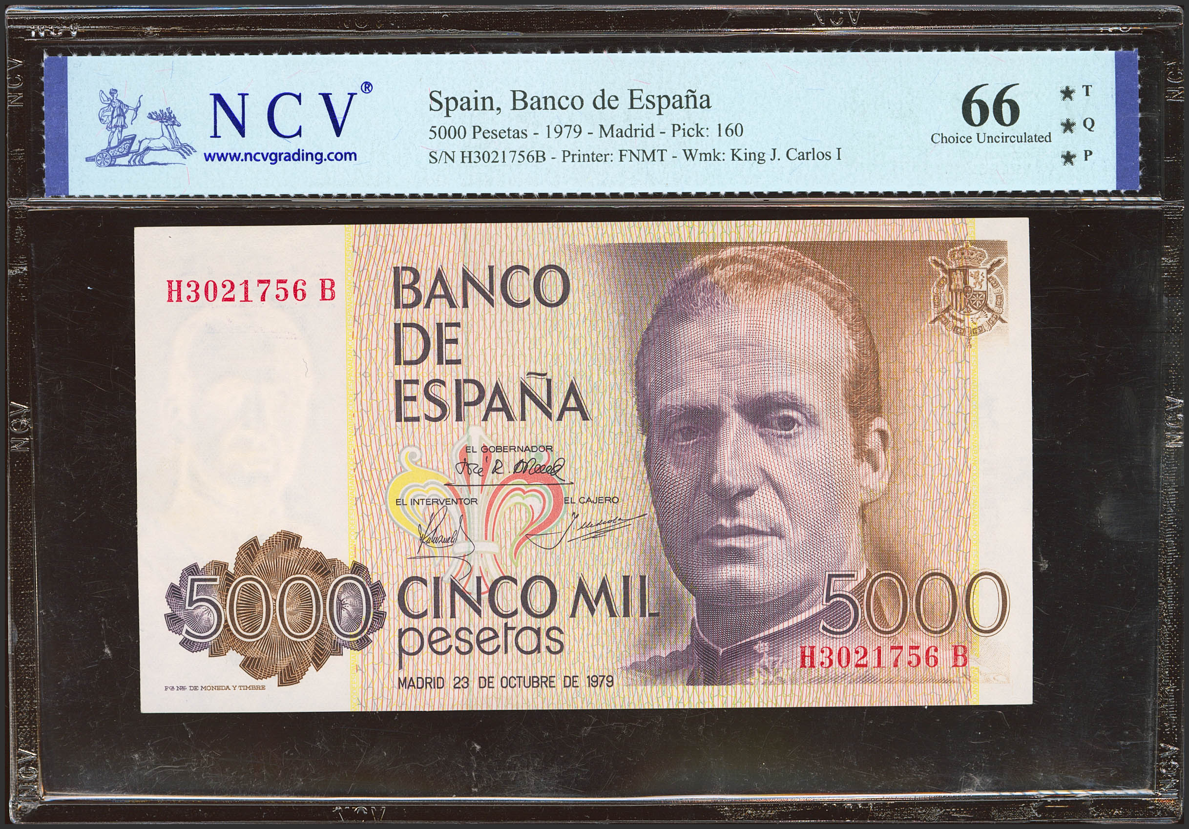 5000 Pesetas. October 23, 1979. HB series. (Edifil 2023: 478a, Pick: 160). Uncirculated. NCV66TQP package.