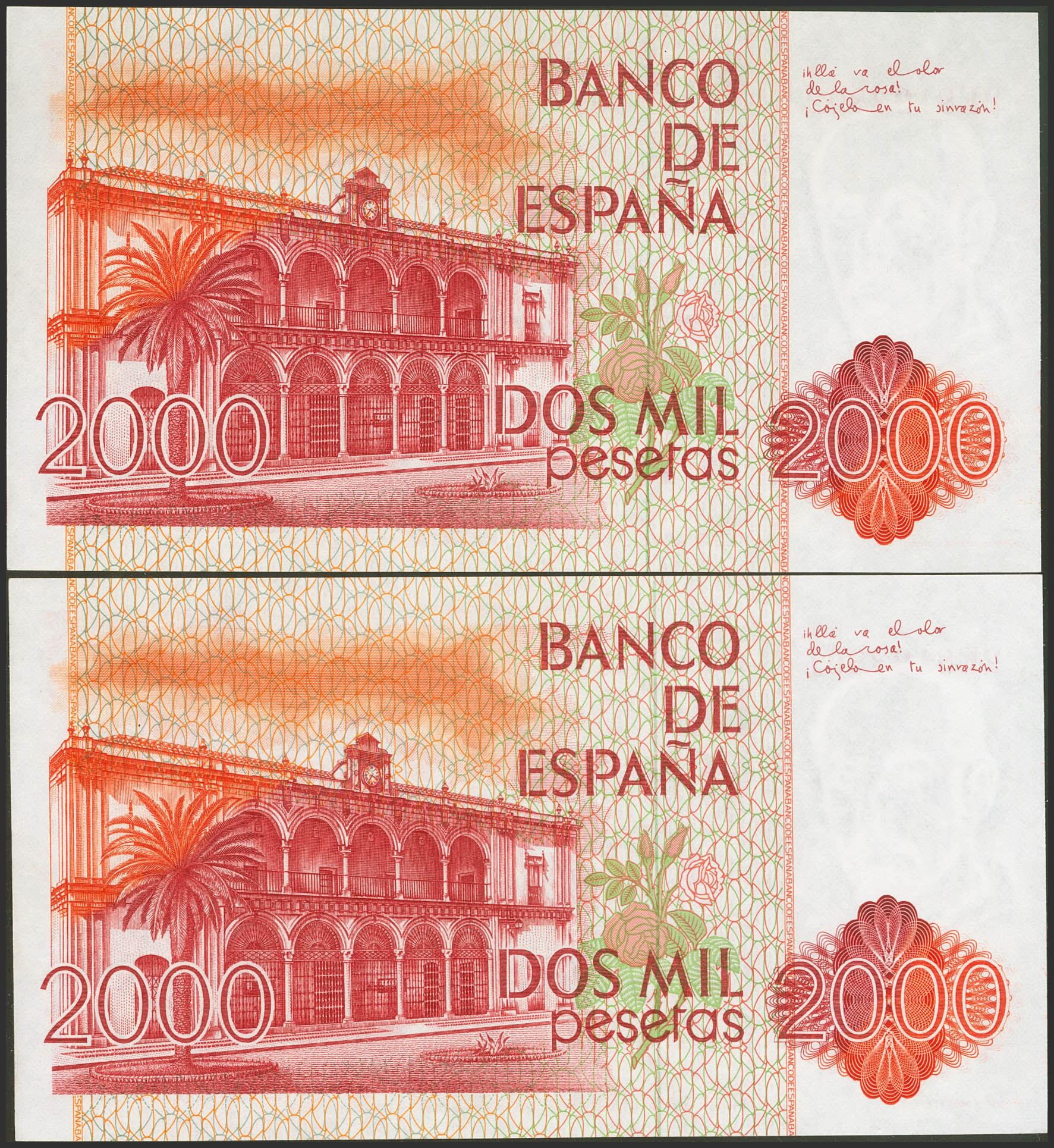 2000 Pesetas. July 22, 1980. Correlative couple. Series 2E. (Edifil 2023: 479a). Uncirculated-.