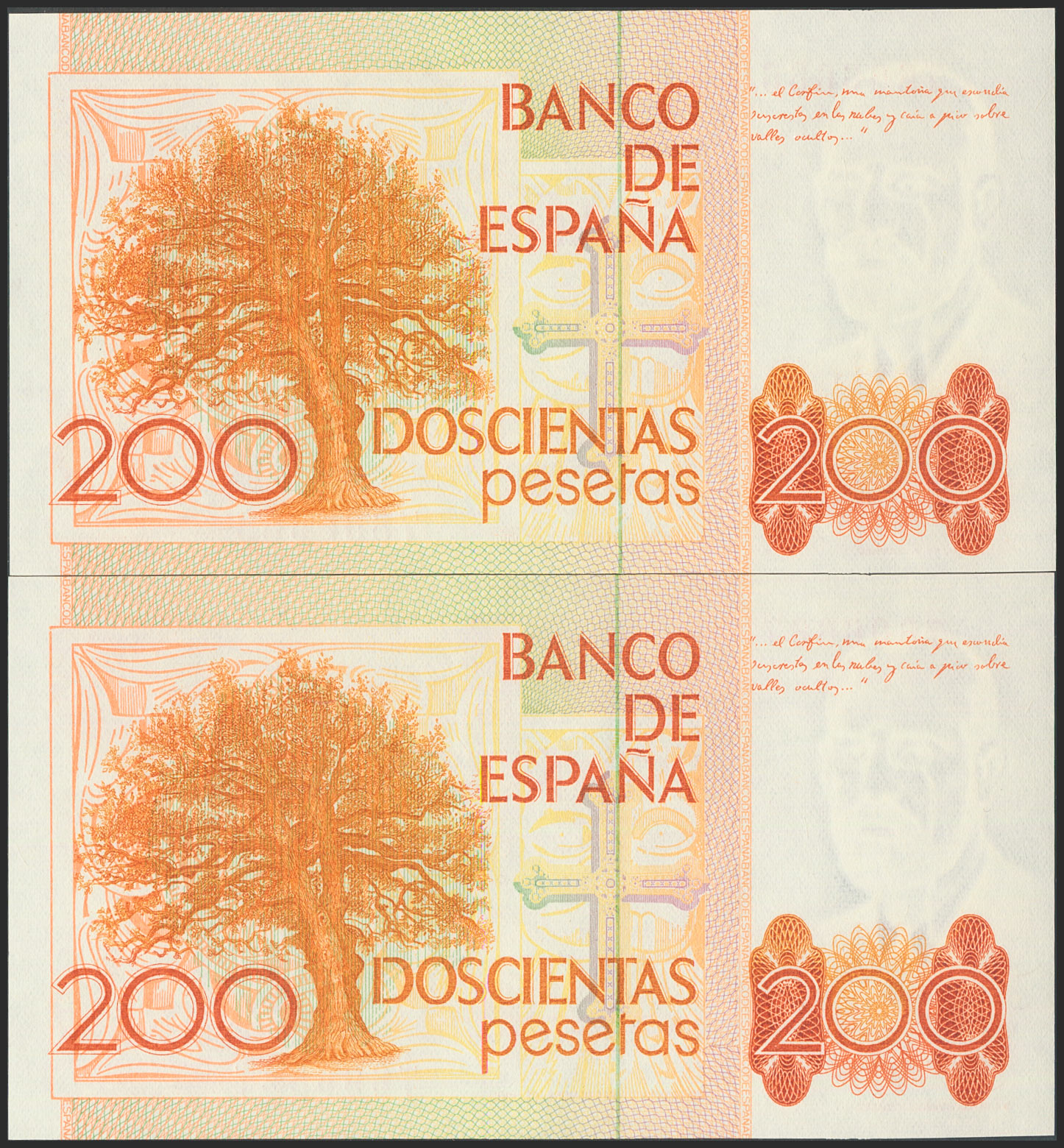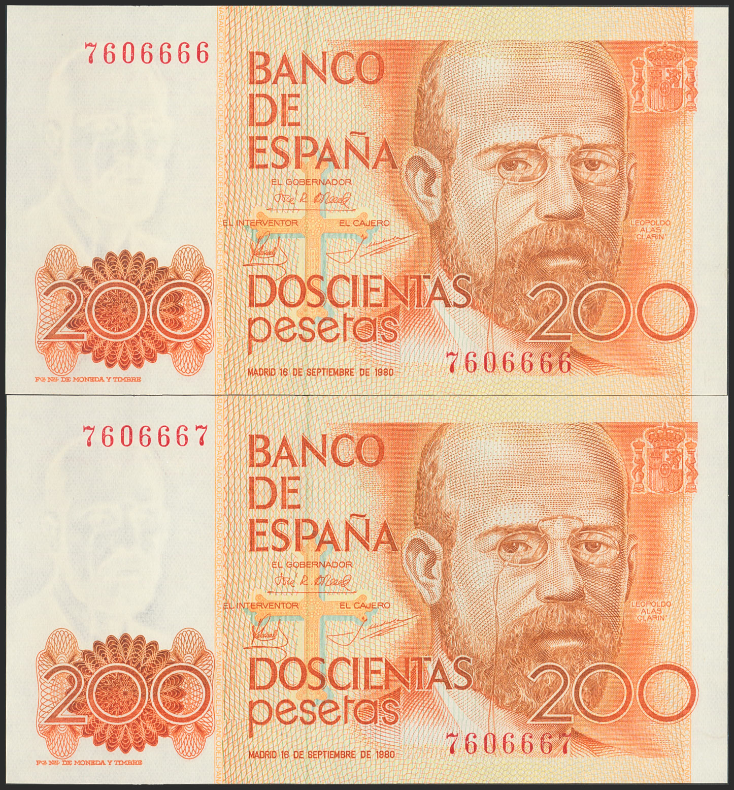 200 Pesetas. September 16, 1980. Correlative couple. No serie. (Edifil 2017: 480). Uncirculated.