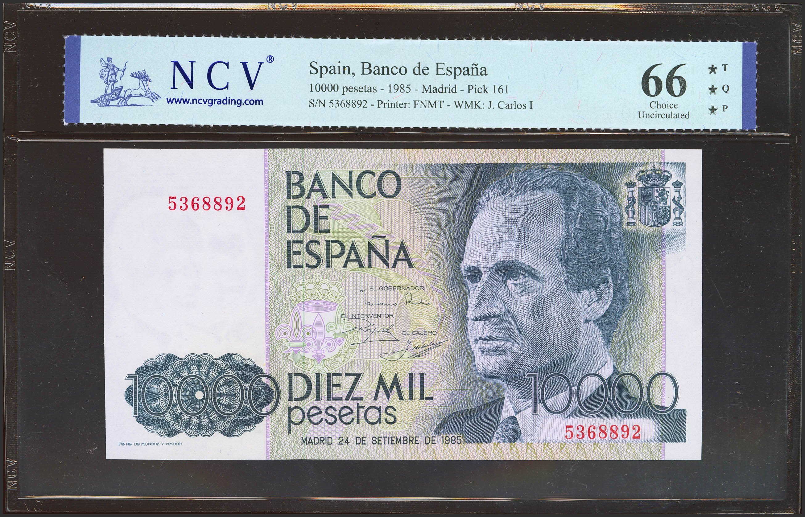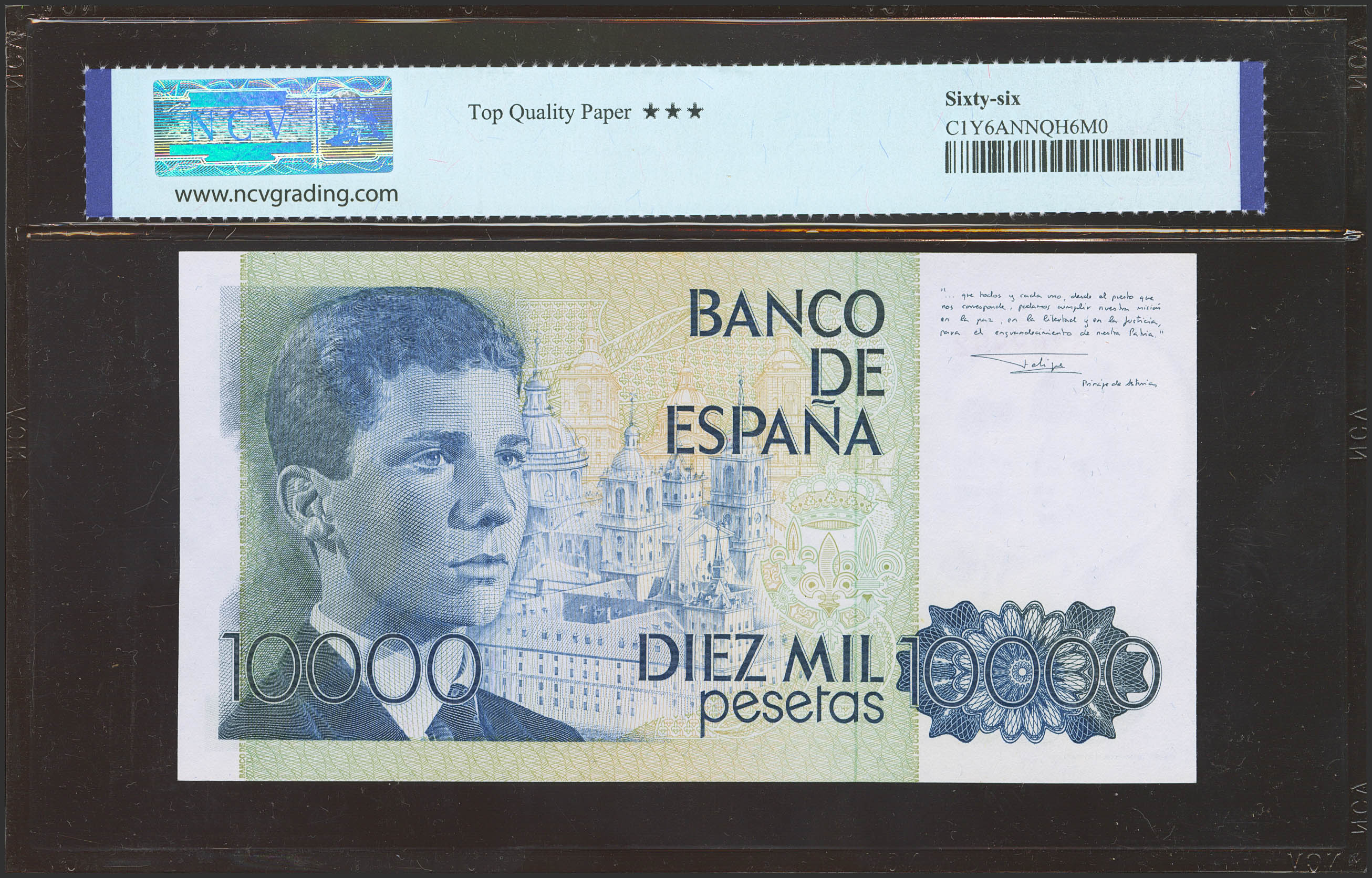 10,000 Pesetas. September 24, 1985. No series. (Edifil 2023: 481, Pick: 161). Uncirculated. NCV66TQP package.