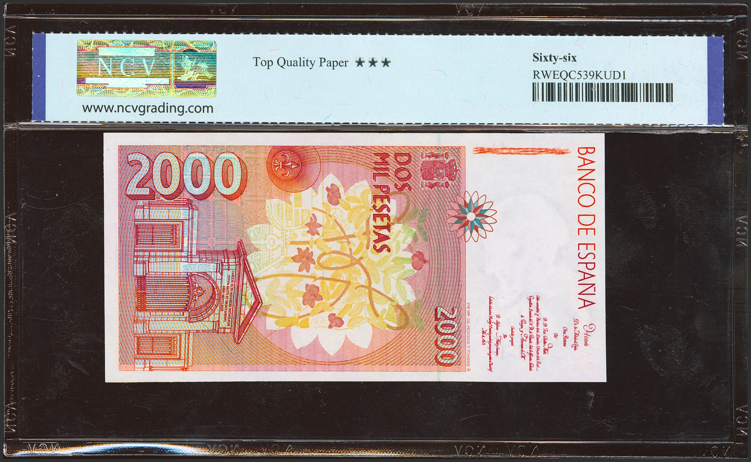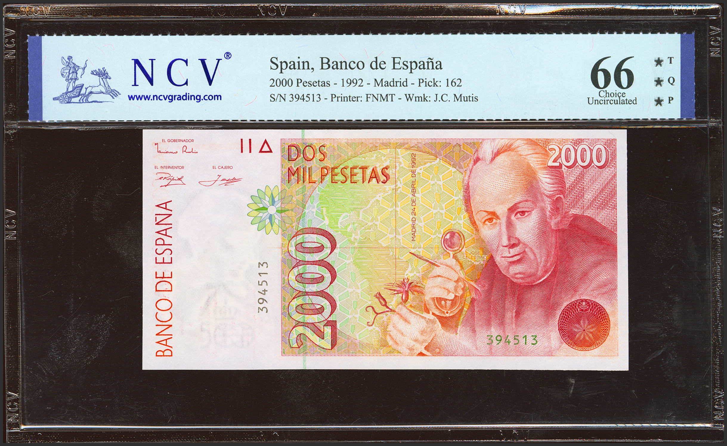 2000 Pesetas. April 24, 1992. No series. (Edifil 2023: 482, Pick: 162). Uncirculated. NCV66TQP package.