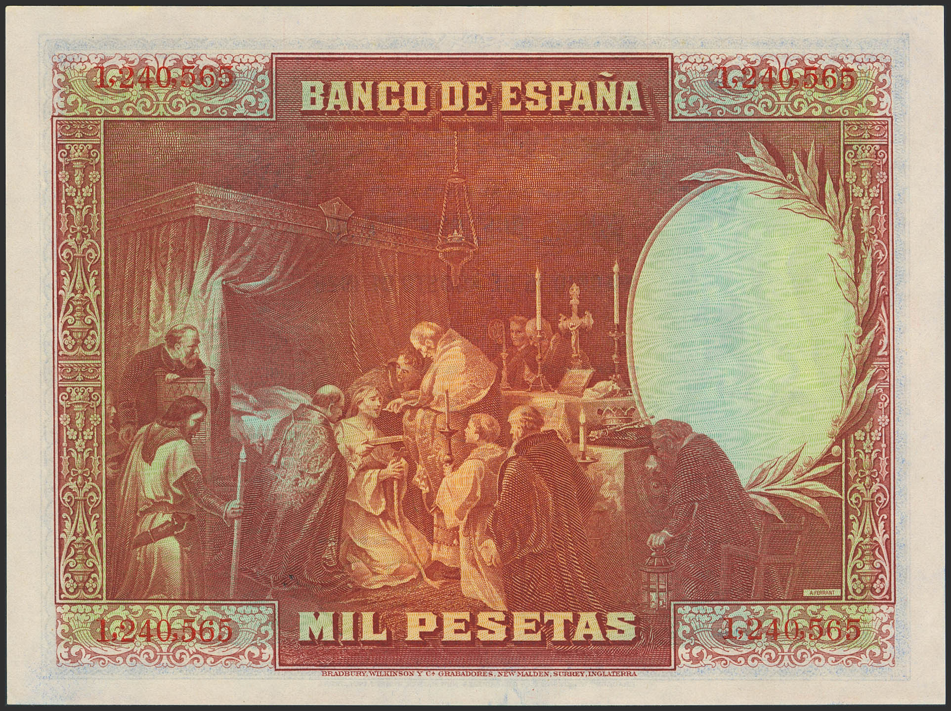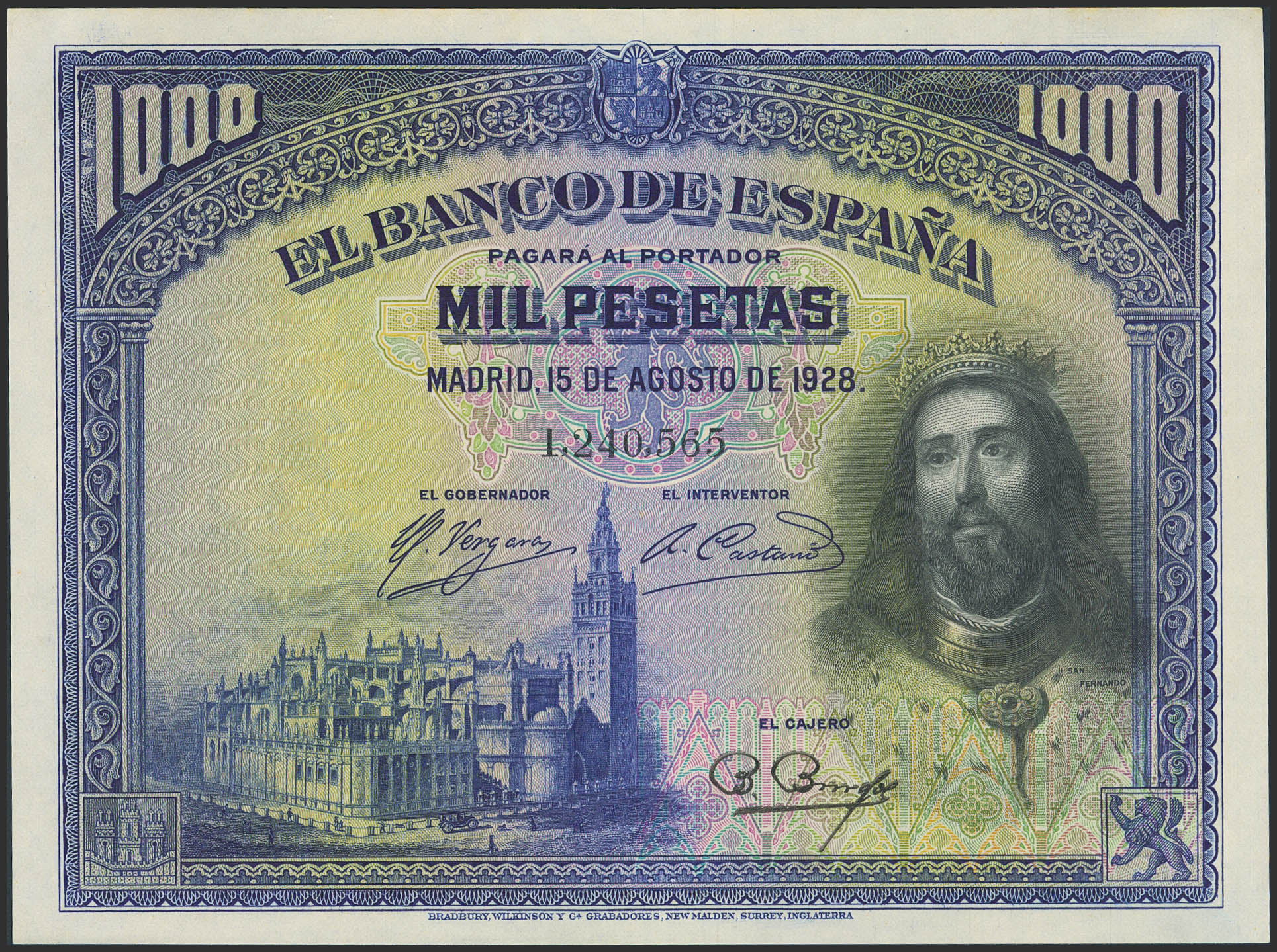 1000 Pesetas. August 15, 1928. No series. (Edifil 2023: 357). It retains much of its original finish. Good Extremely Fine++.