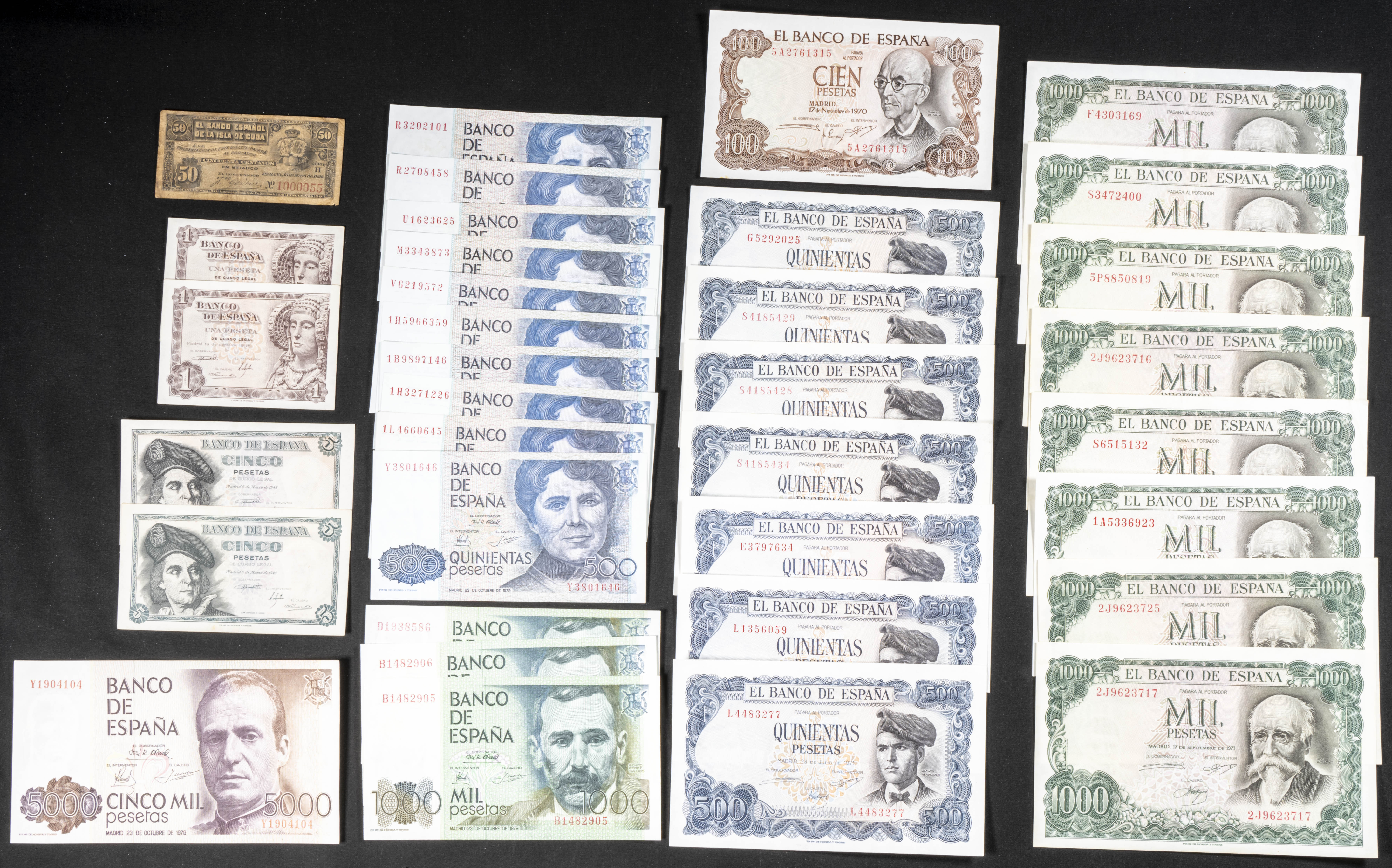 Set of more than 30 banknotes from the Bank of Spain of different issues and in various qualities. TO EXAMINE.