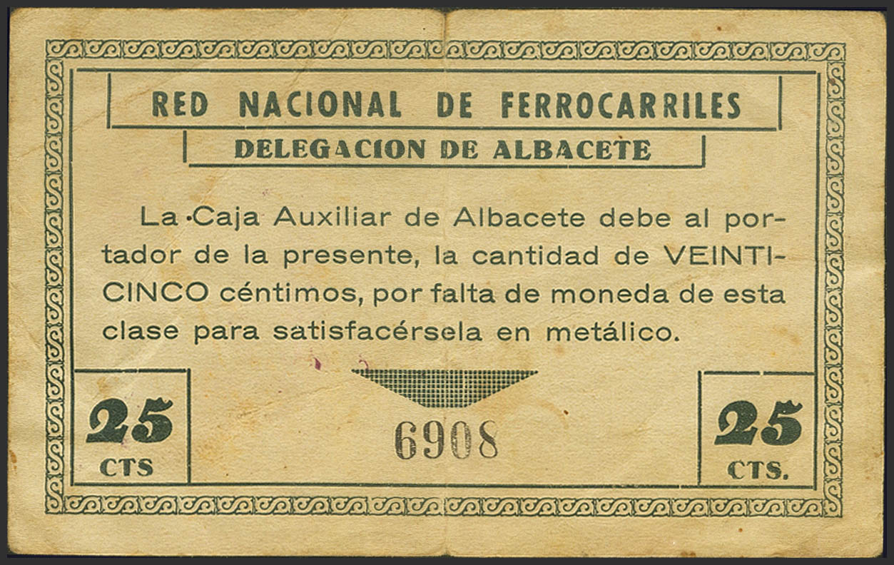 ALBACETE. 25 Cents. (1937ca). (González: 133). Very Fine-.