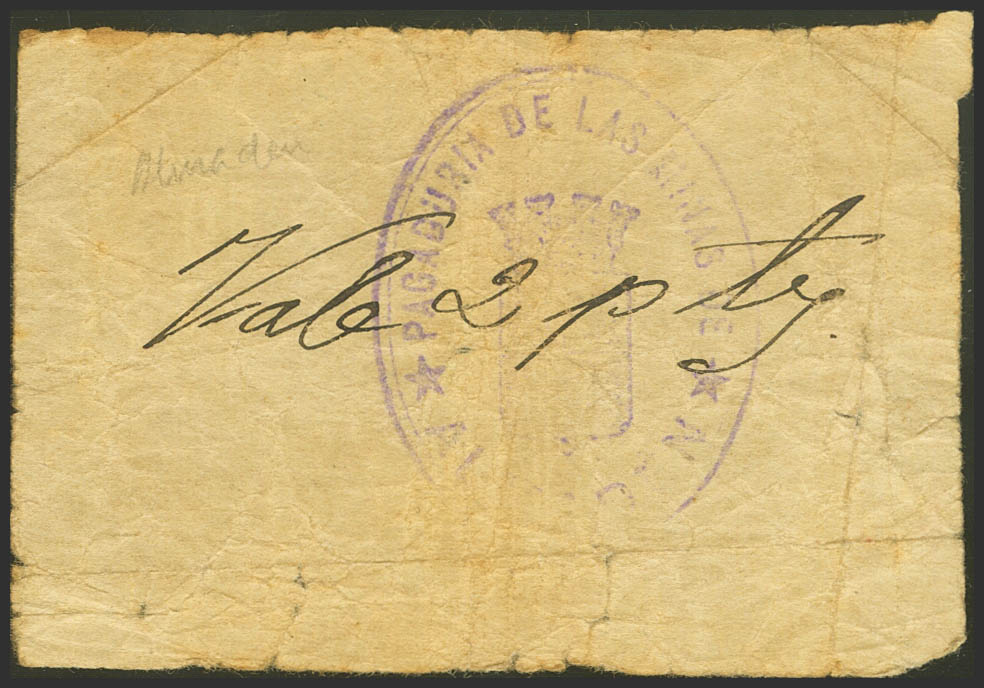 ALMADEN (CITY REAL). 2 Pesetas. (1937ca). (González: Not mentioned). Extraordinarily rare, to give us an idea of the rarity, in the González catalog this issue is mentioned but only the value of 50 cts. Good Fine.