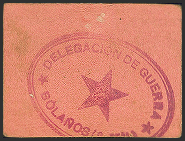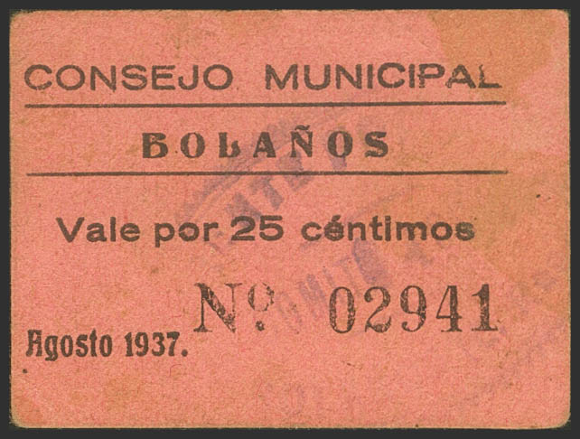 BOLAÑOS (CIUDAD REAL). 25 Cents. August 1937. (González: 1255). Queer. Extremely Fine.