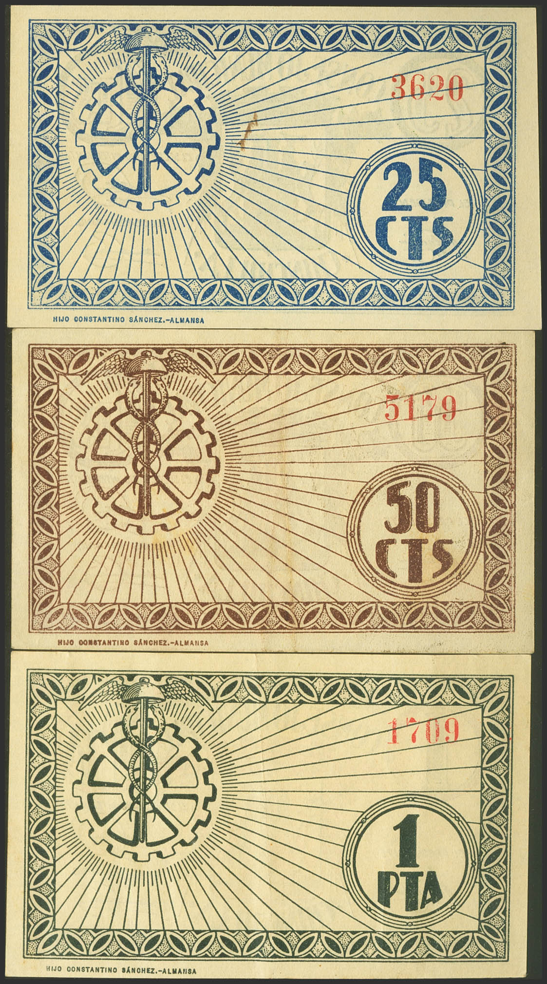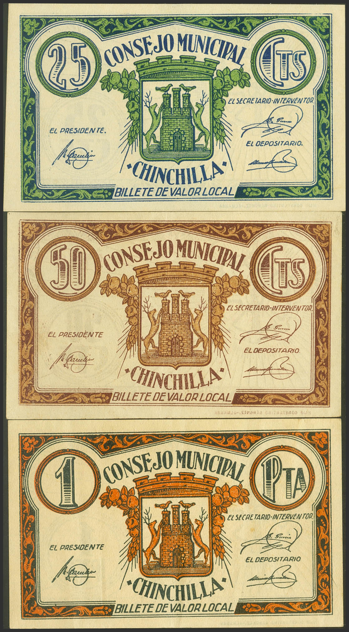 CHINCHILLA (ALBACETE). 25 Cents, 50 Cents and 1 Peseta. (1937ca). (González: 1921/23). Complete series. Uncirculated/Good Very Fine.