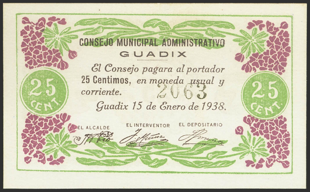 English GUADIX (GRANADA). 50 Cents. January 1, 1838. (González: 2771). Uncirculated.