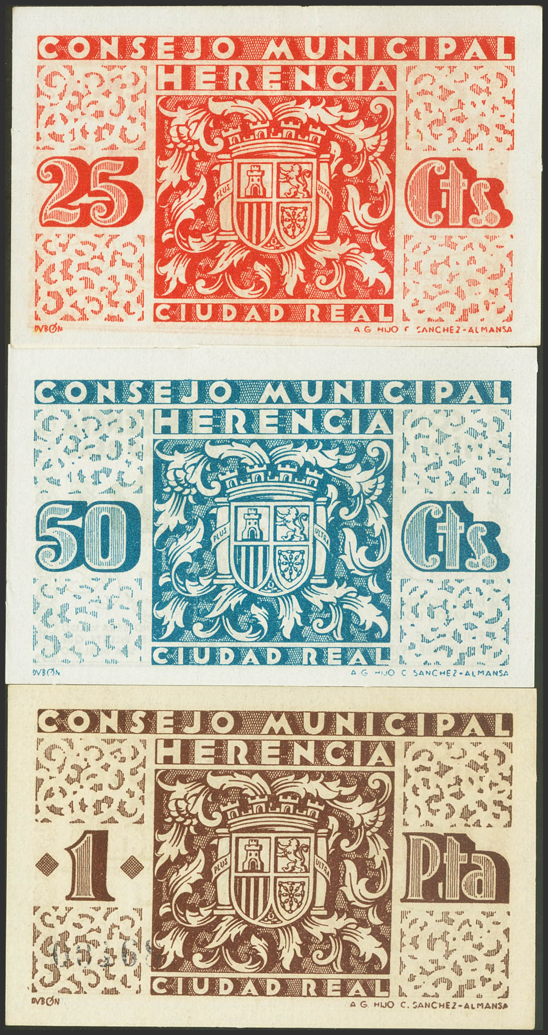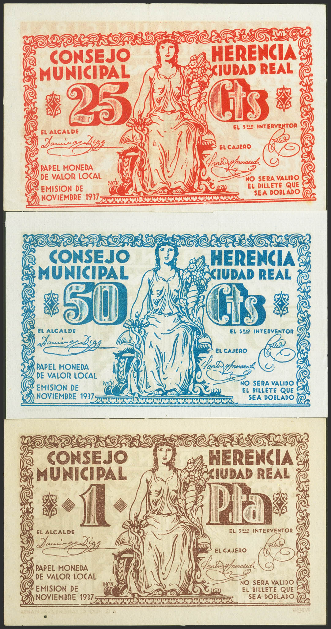 HERITAGE (CITY REAL). 25 Cents, 50 Cents and 1 Peseta. November 1937. (González: 2821/23). Complete series. Extremely Fine/Uncirculated-.