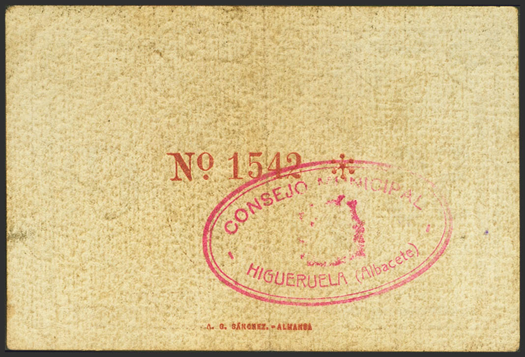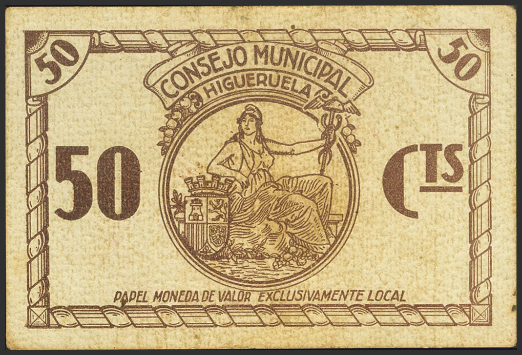 HIGUERUELA (ALBACETE). 50 Cents. (1937ca). (González: 2843). Very Fine.