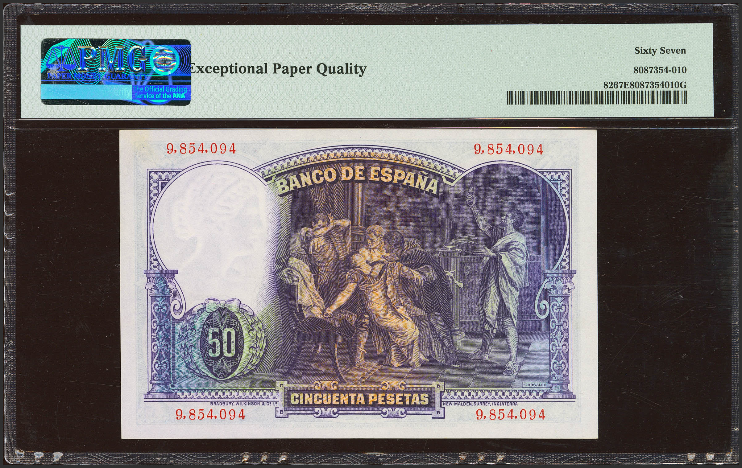 50 Pesetas. April 25, 1931. No series. (Edifil 2023: 359, Pick: 82). Rare in this exceptional quality, original sizing. Uncirculated. PMG67EPQ package.
