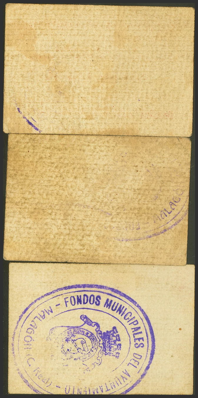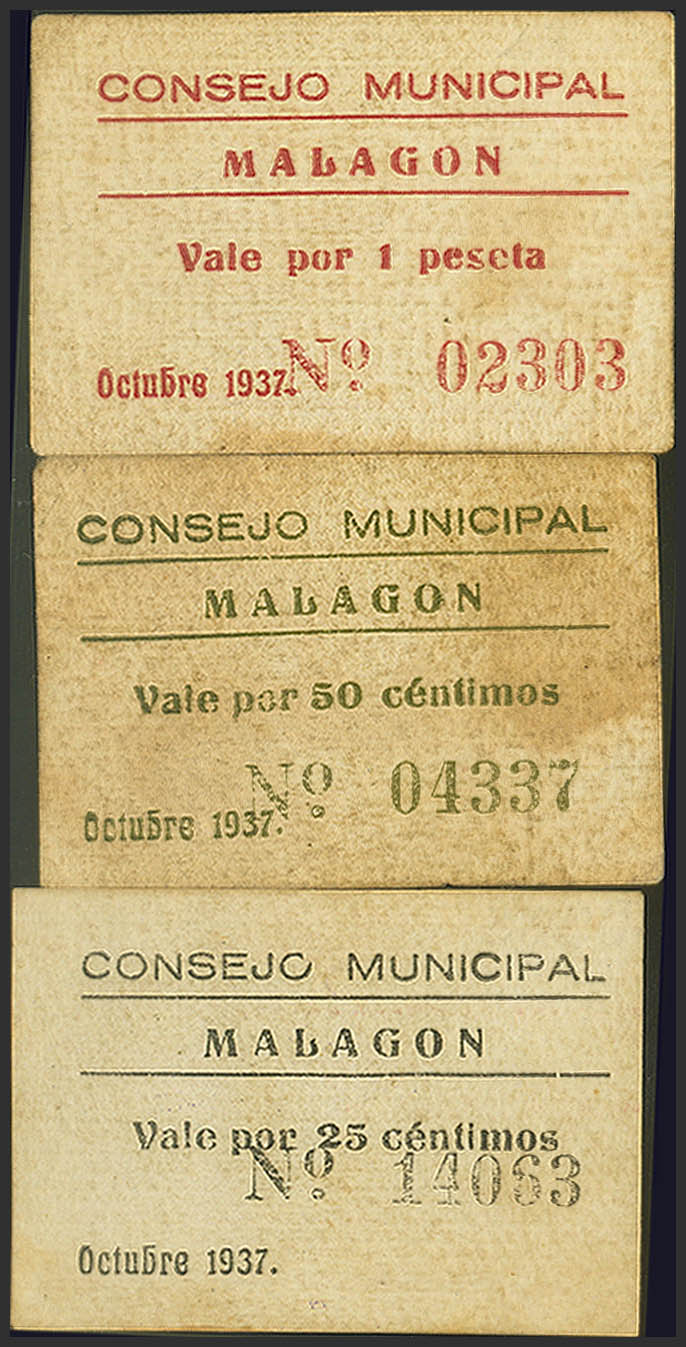 MALAGON (CITY REAL). 25 Cents, 50 Cents and 1 Peseta. October 1937. (González: 3317/19). Rare complete series. Good Very Fine/Very Fine.