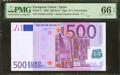500 euros. January 1, 2002. Signature Duisenberg. Series V (Spain). (Edifil 2021: 492). Unusual. Uncirculated. PMG66EPQ package.