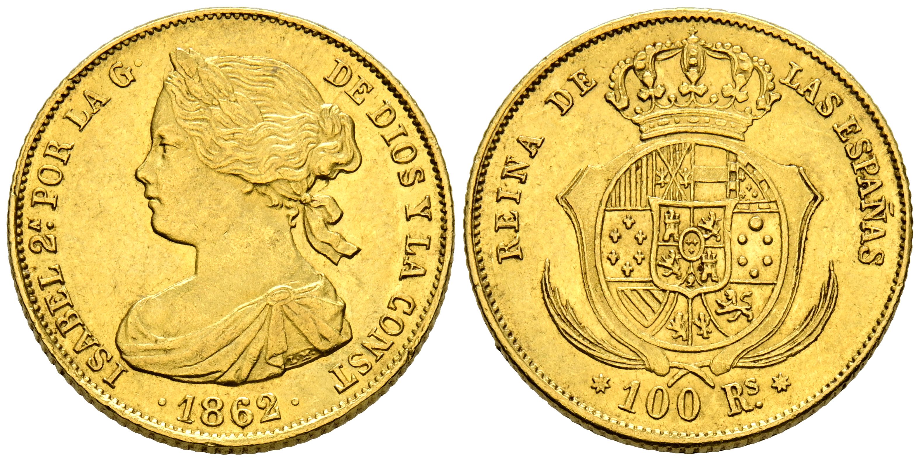 ELIZABETH II (1833-1868). 100 Reales. (Au. 8.37g/22mm). 1862. Seville. (Cal-2019-805). Extremely Fine.