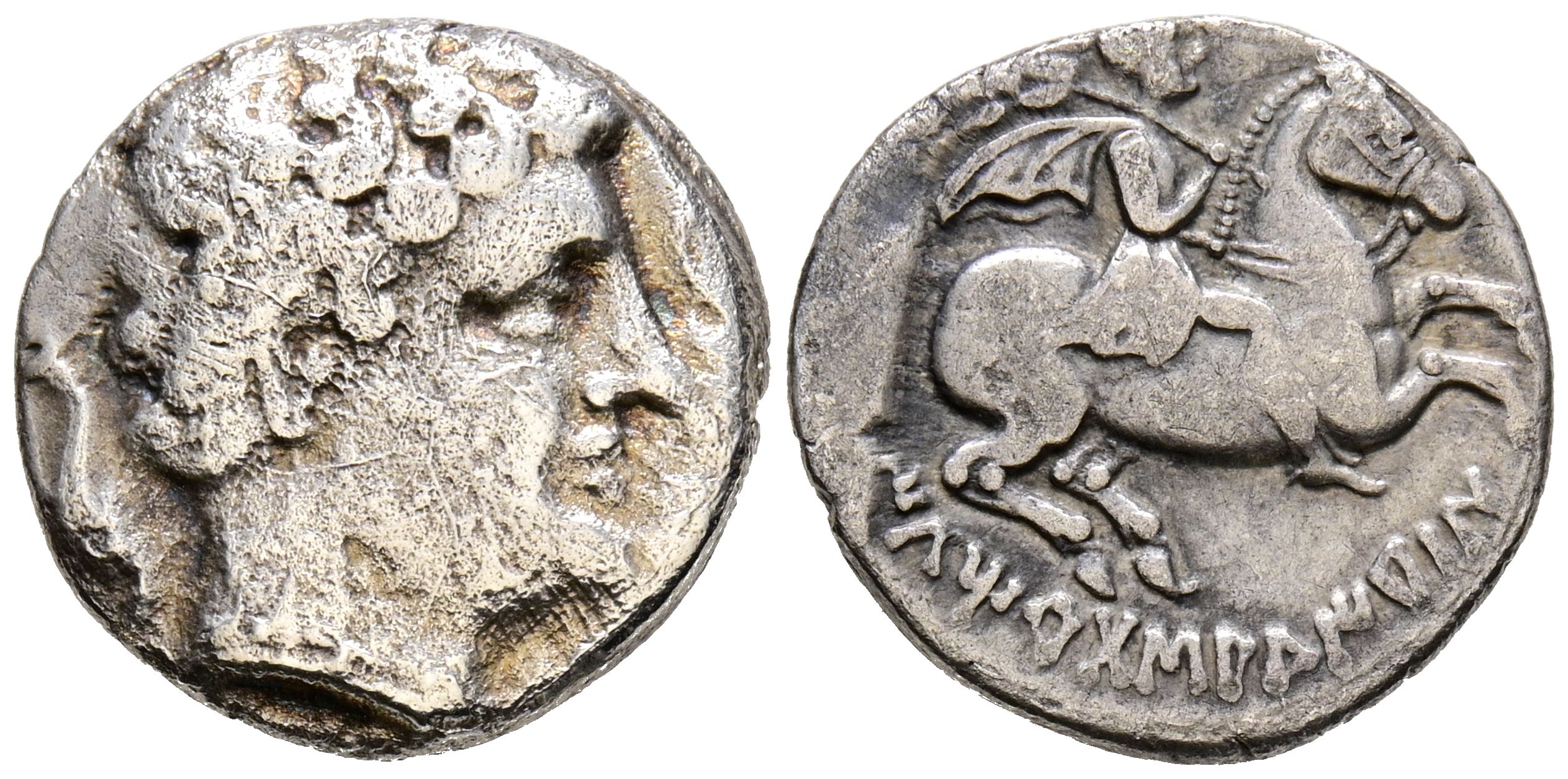 ILTIRTASALIRBAN (Lleida). Denarius. (Ar. 3.74g/18mm). 200-20 Fine (FAB-1455). Obv: Male head facing right surrounded by three dolphins. Reverse: Horseman with palm facing right, below Iberian legend: ILTiRTaSALIRBaN. VF.