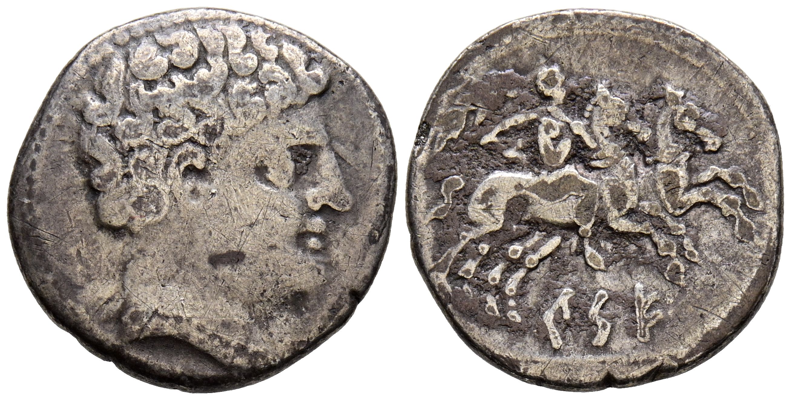 CESE (Tarragona). Denarius. (Ar. 3.55g/19mm). 120-20 Fine (FAB-2266). Obv: Male head to right. Rev: Rider with palm to right leading second horse, below Iberian legend on line: CeSE. Very Fine-.