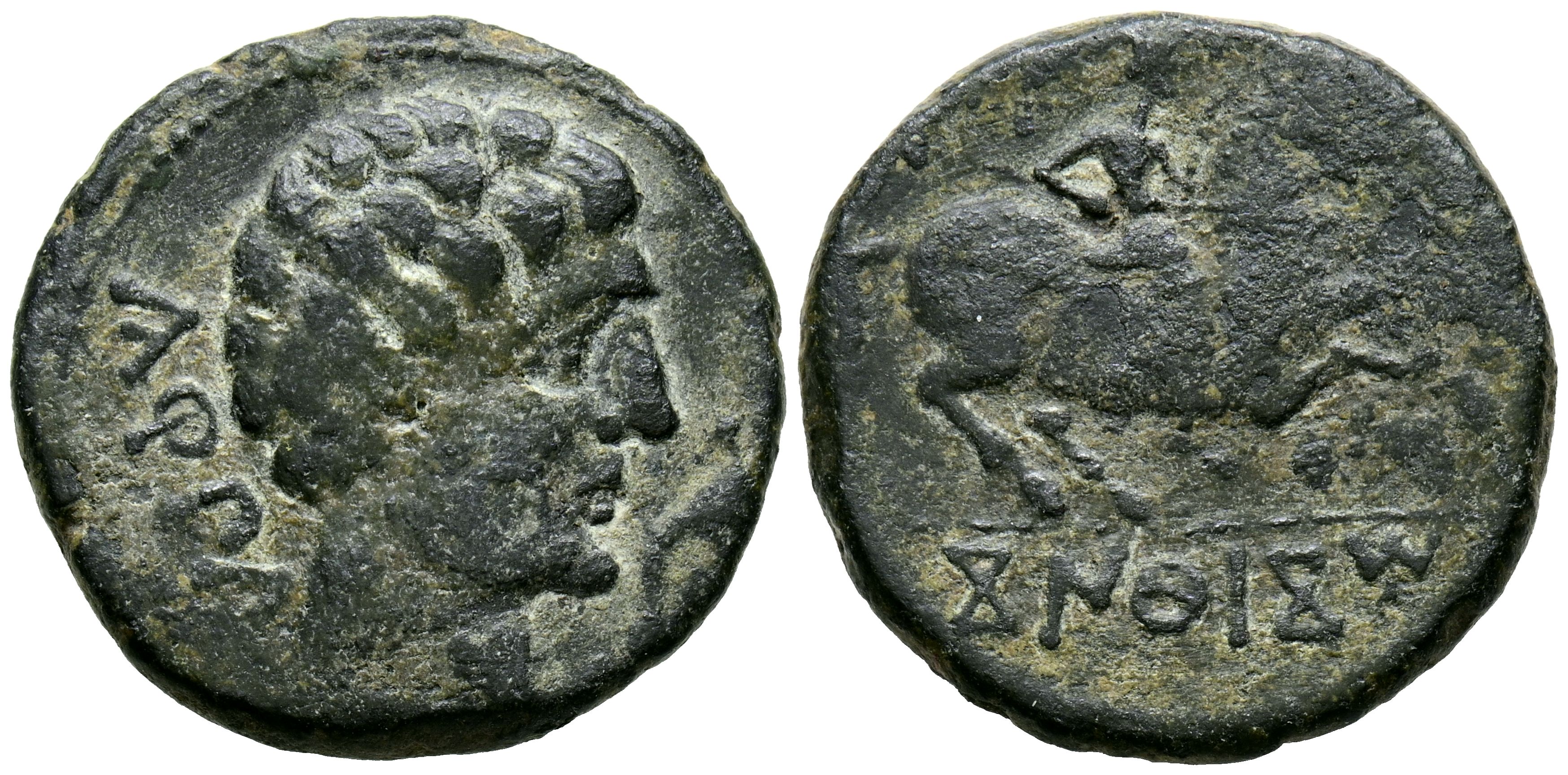 CONTERBIA CARBICA (Huete, Cuenca). As. (Ae. 8.59g/24mm). 120-80 Fine (FAB-846). Anv: Male head to the right, behind legend: CaRBiCa, in front dolphin. Rev: Horseman with lance to the right, below Iberian legend below line: CoNTeBaCoM. VF-.