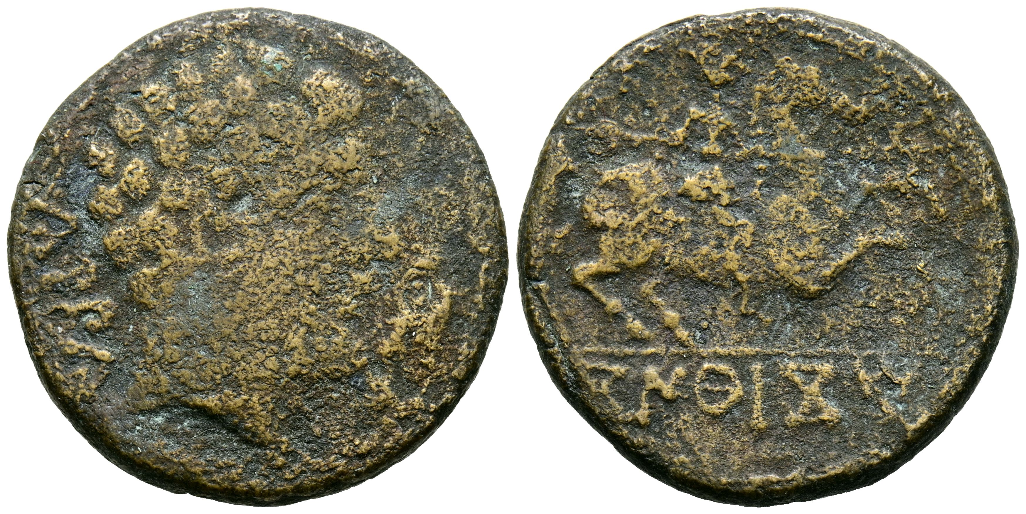 CONTERBIA CARBICA (Huete, Cuenca). As. (Ae. 8.81g/25mm). 120-80 Fine (FAB-846). Anv: Male head to right, behind legend: CaRBiCa, in front dolphin. Rev: Horseman with lance to right, below Iberian legend below line: CoNTeBaCoM. Fine.