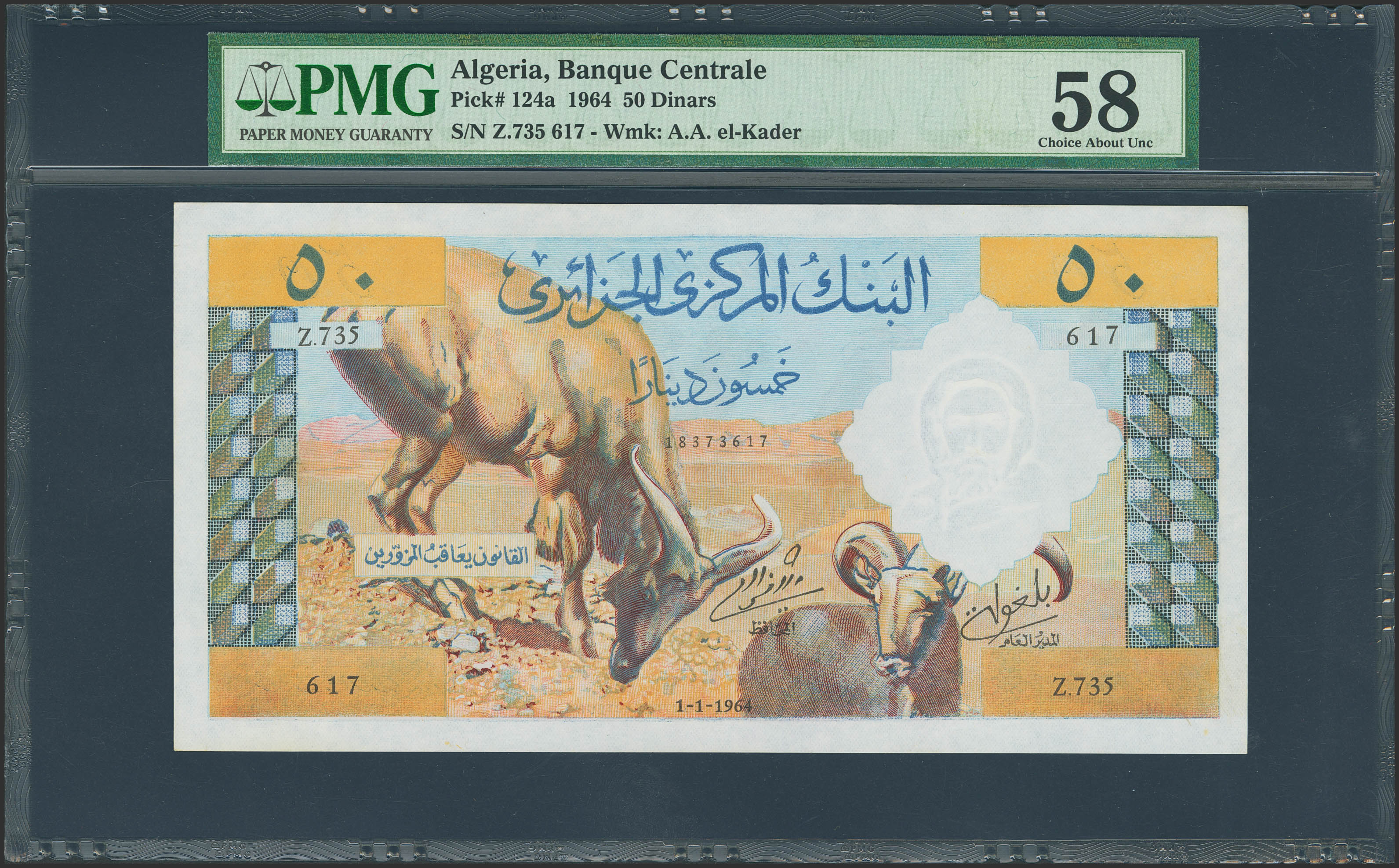 ALGERIA. 50 Dinars. 1 January 1964. (Pick: 124a). Rare. PMG58 (closed pinholes).