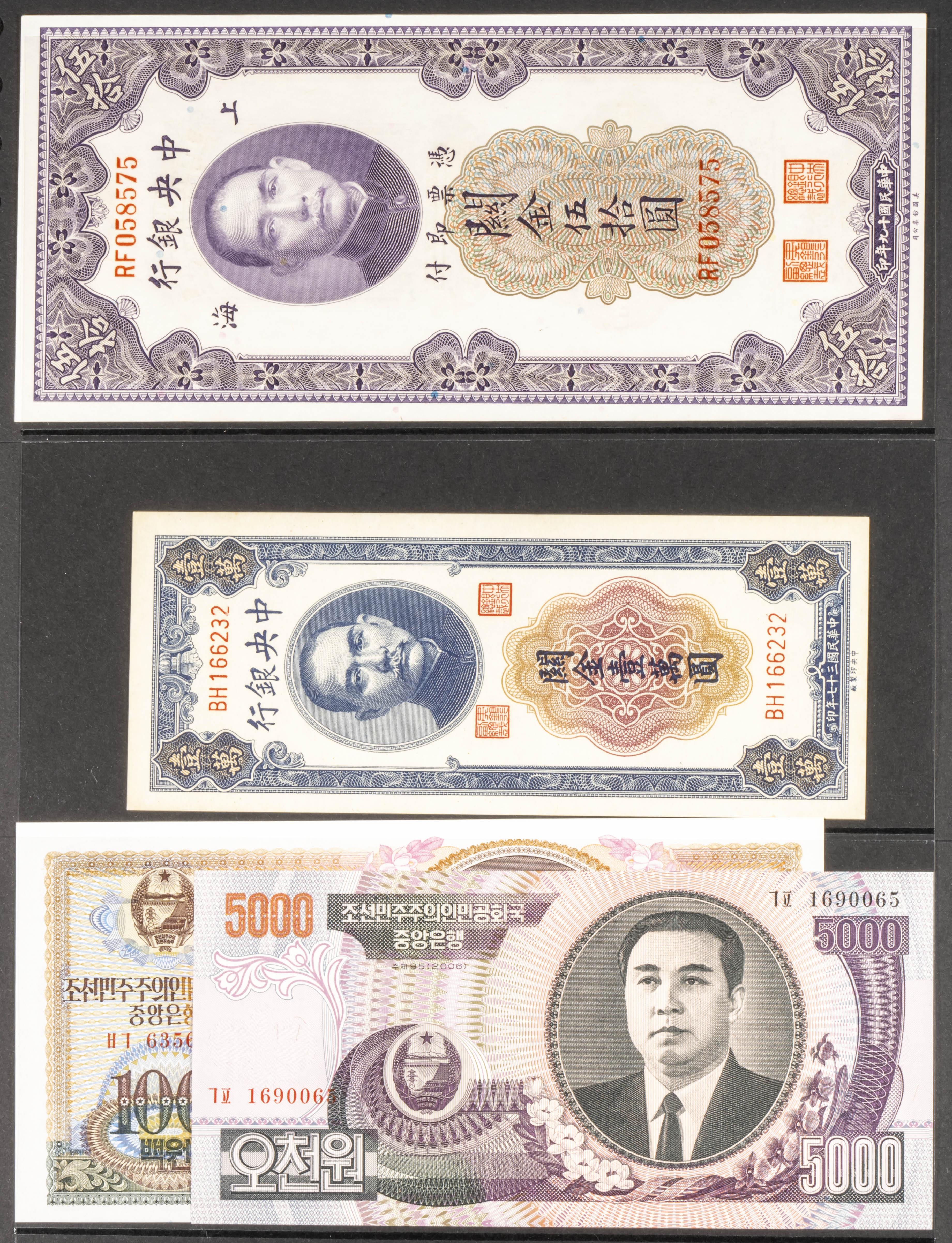 English Set of 11 banknotes from China and 2 from North Korea of various issues. TO EXAMINE.