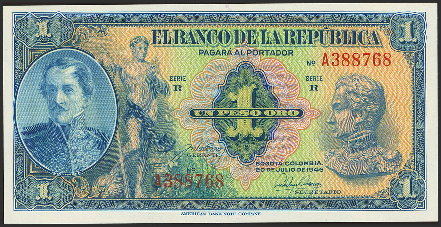 COLOMBIA. 1 Weight. 20 July 1946. (Pick: 380e). Uncirculated.