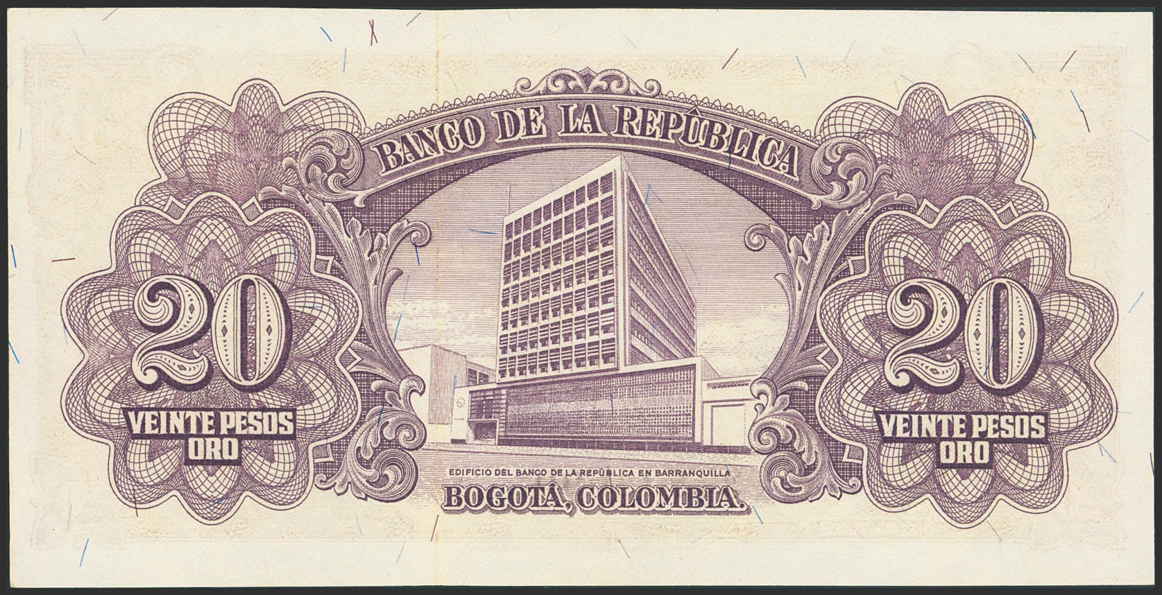 COLOMBIA. 20 Pesos. 1 January 1960. (Pick: 401). Uncirculated.