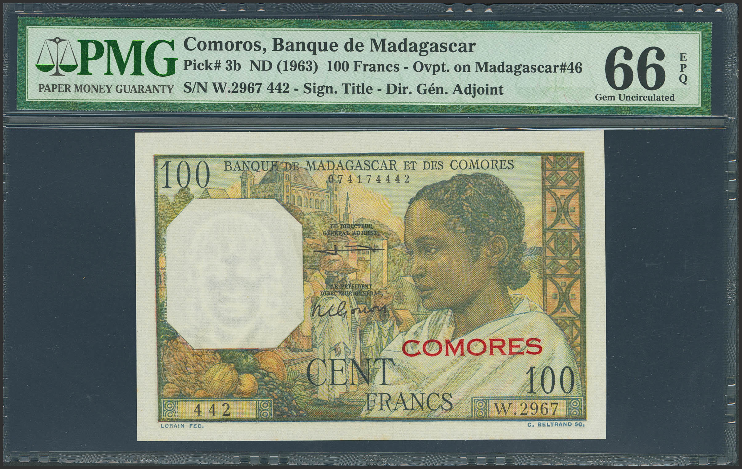 COMOROS. 100 Francs. (1963ca). (Pick: 3b). PMG66EPQ.