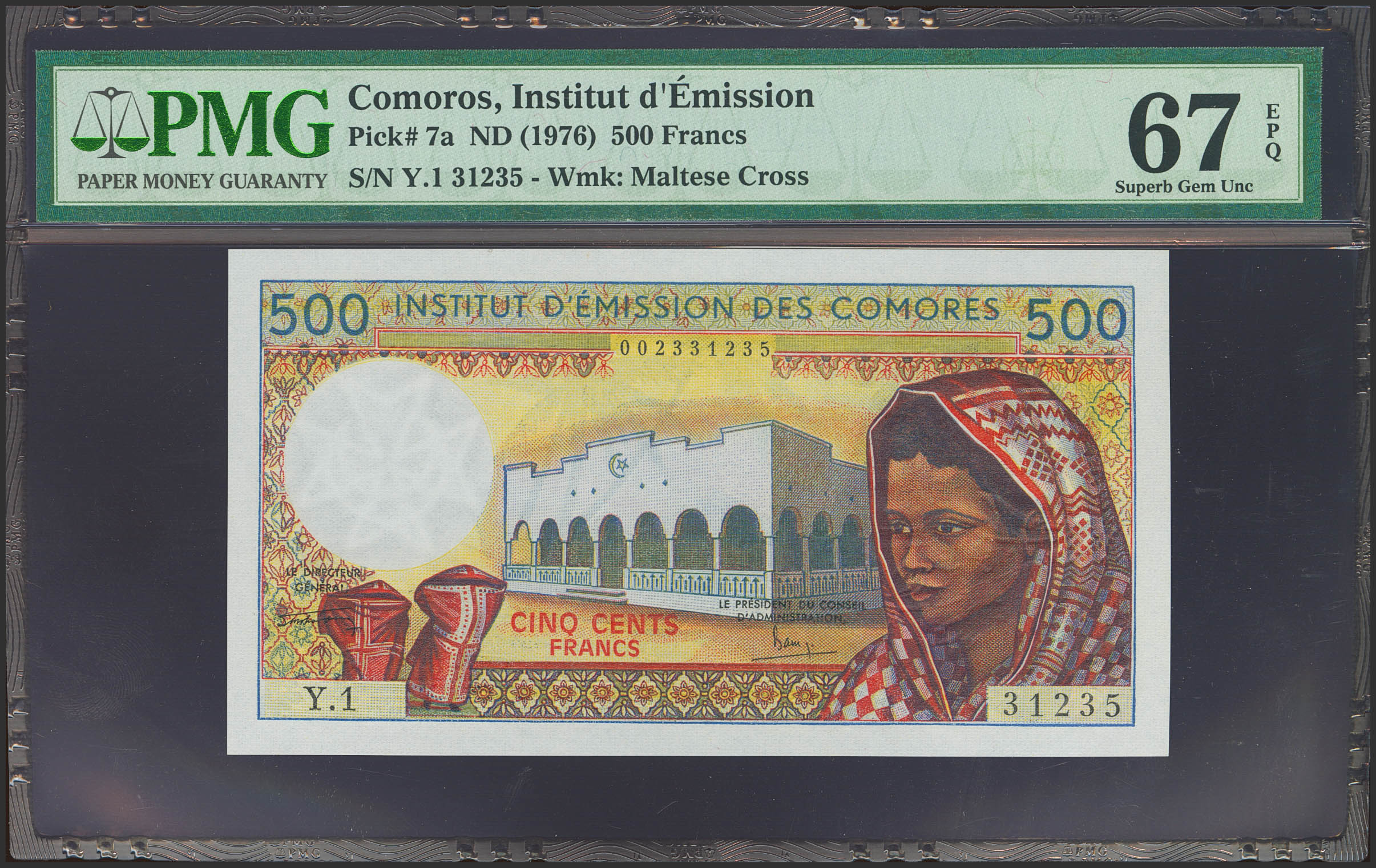 COMOROS. 500 Francs. (1976ca). (Pick: 7a). PMG67EPQ.