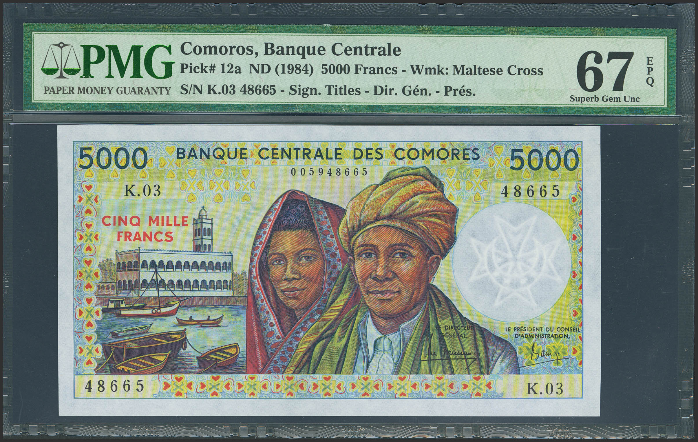 COMOROS. 5000 Francs. (1984ca). (Pick: 12a). PMG67EPQ.