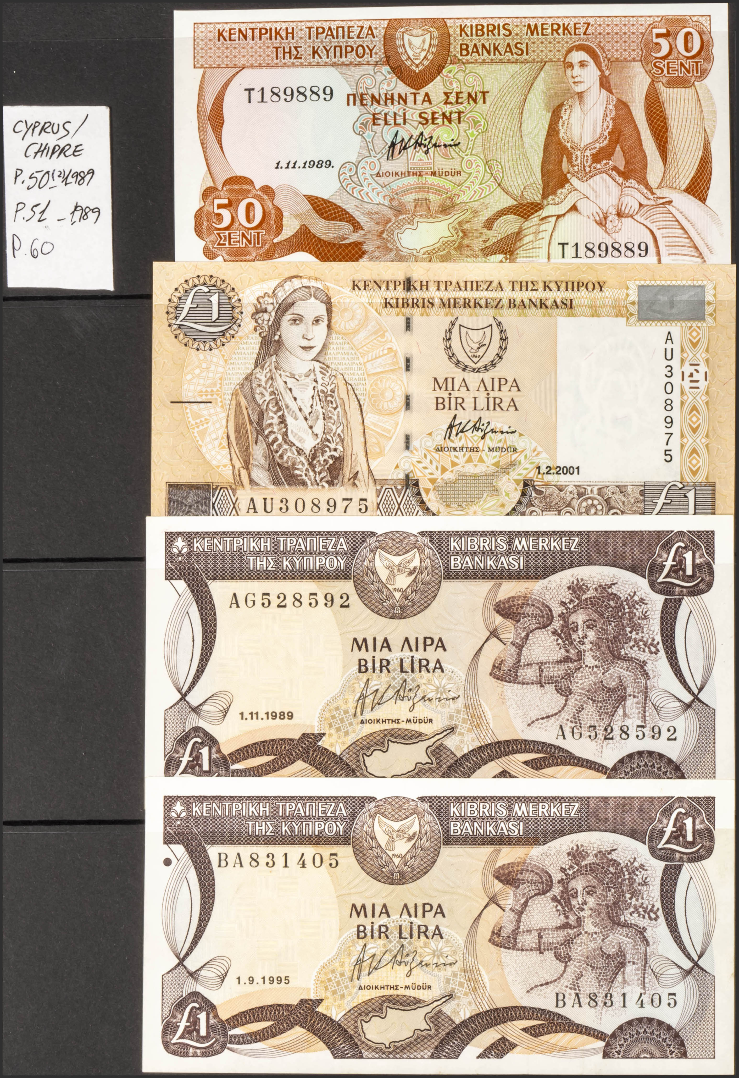 Set of 4 banknotes of Cyprus of various issues and most of them nice qualities. TO EXAMINE.