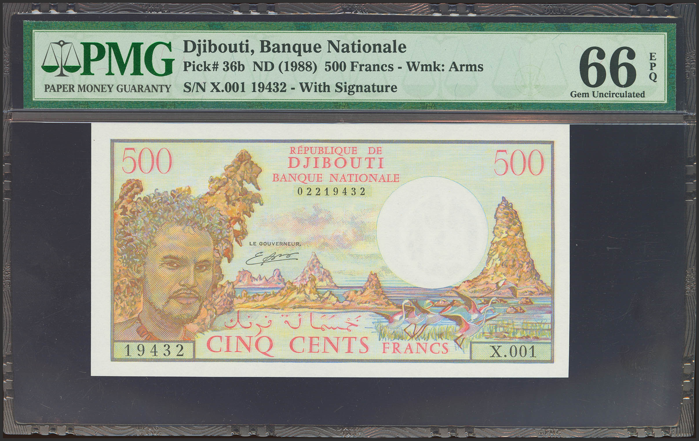DJIBOUTI. 500 Francs. (1988ca). (Pick: 36b). PMG66EPQ.