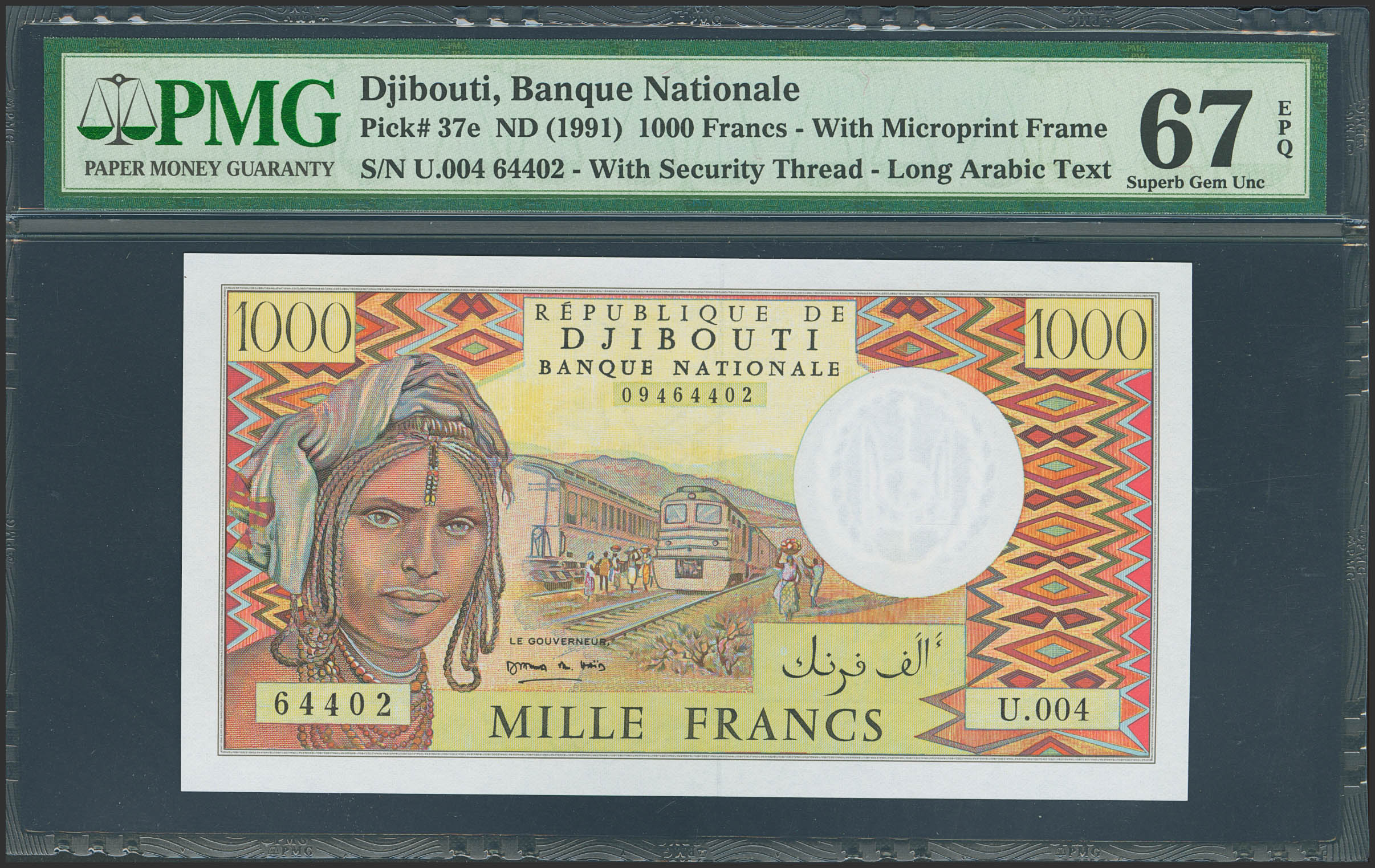 DJIBOUTI. 1000 Francs. (1991ca). (Pick: 37e). PMG67EPQ.