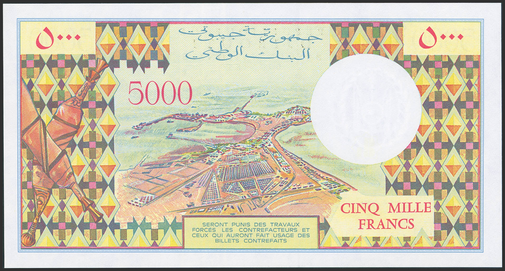 DJIBOUTI. 5000 Francs. (1979ca). (Pick: 38d). About Uncirculated.