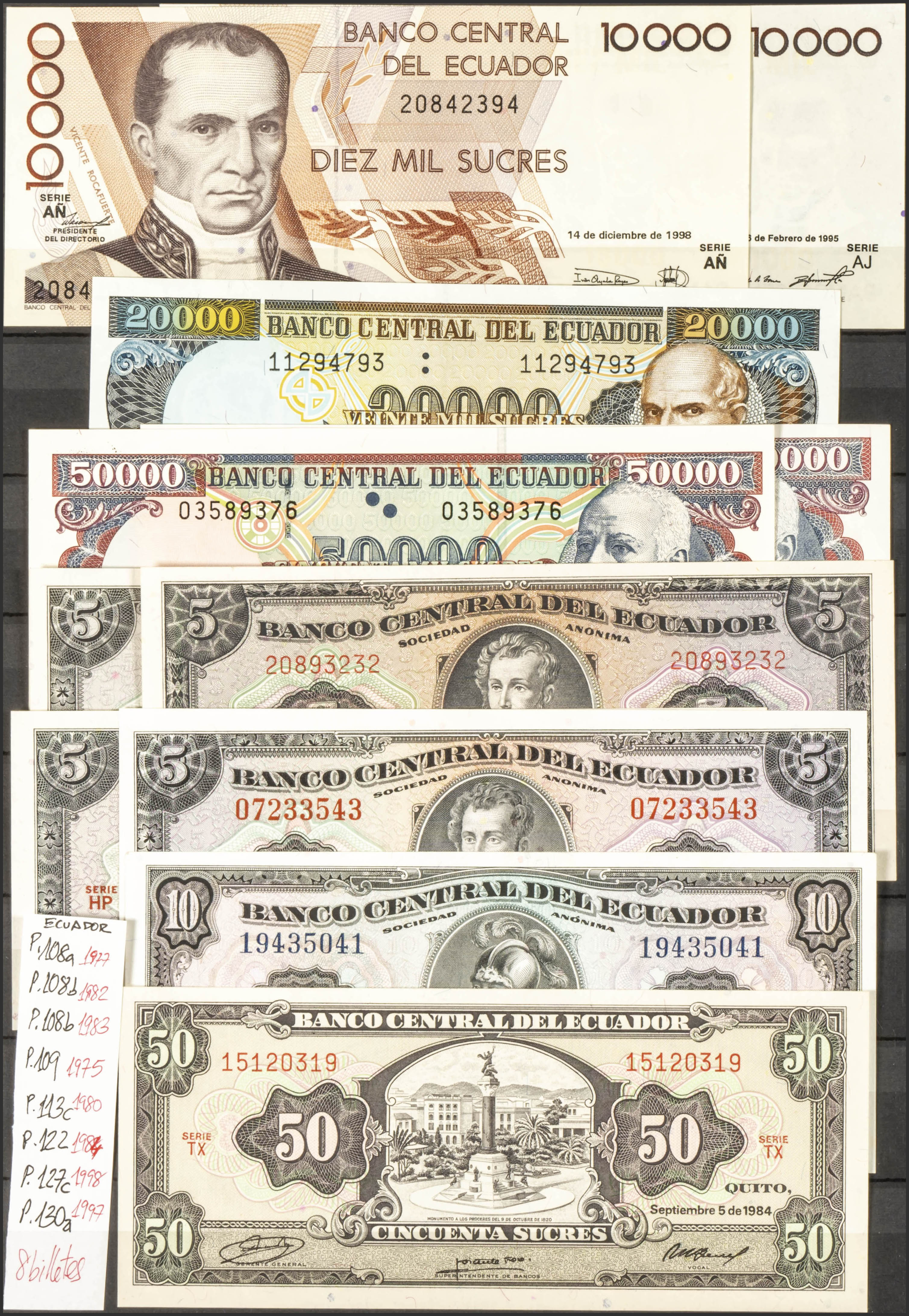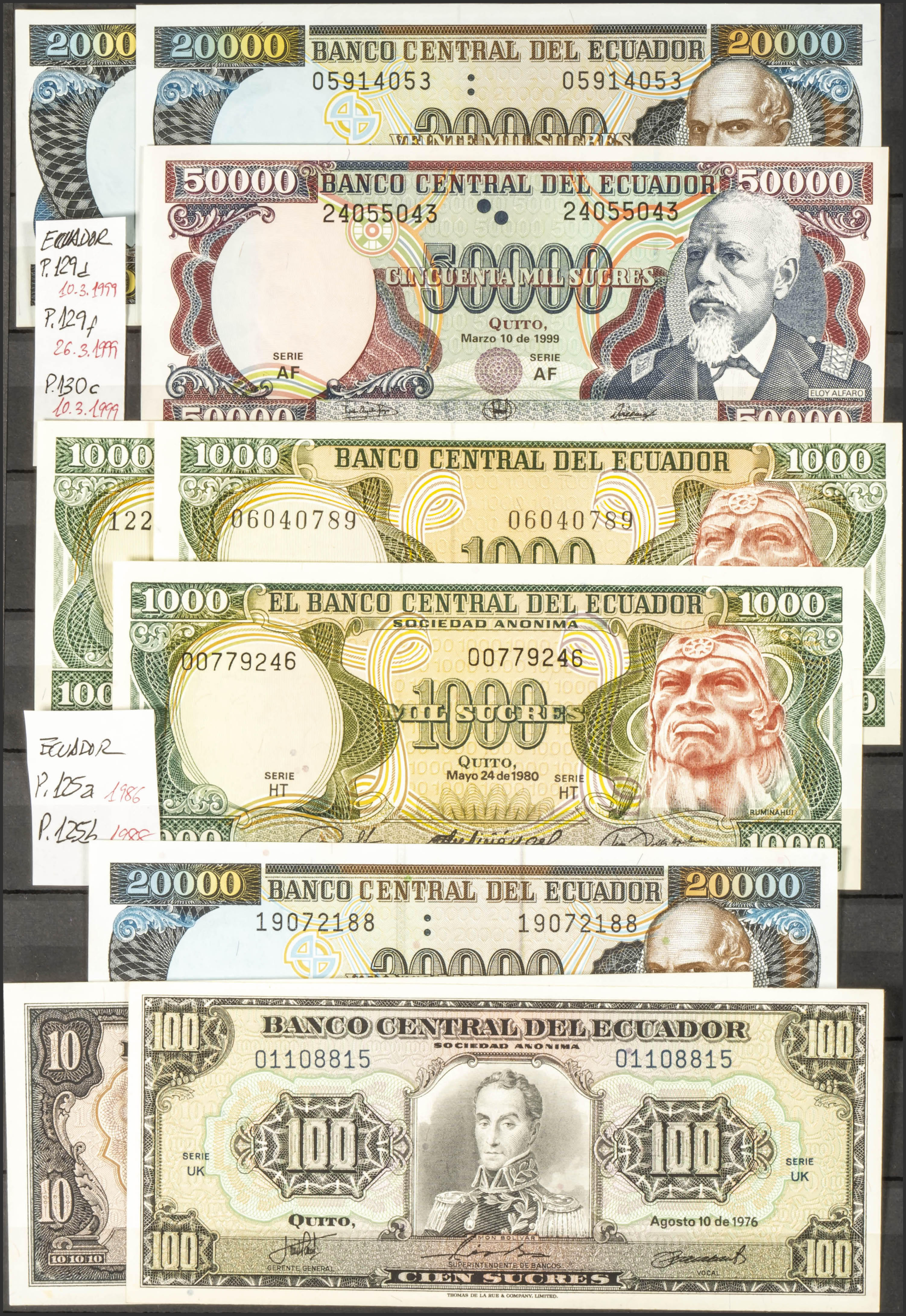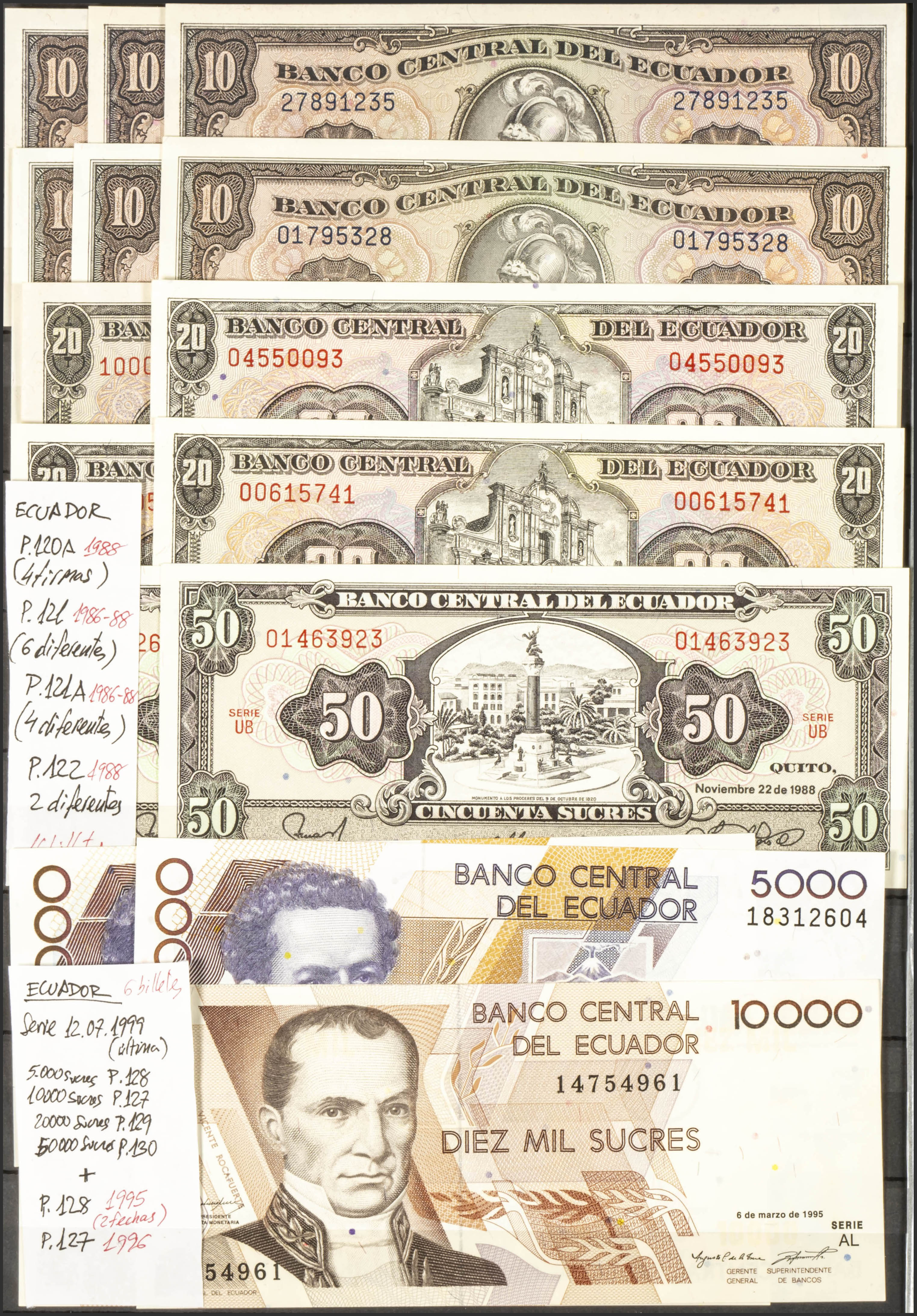 VERY INTERESTING SET of more than 80 banknotes of Ecuador of various issues and most of them nice qualities, it also includes high denomination banknotes and unusual dates. TO EXAMINE.