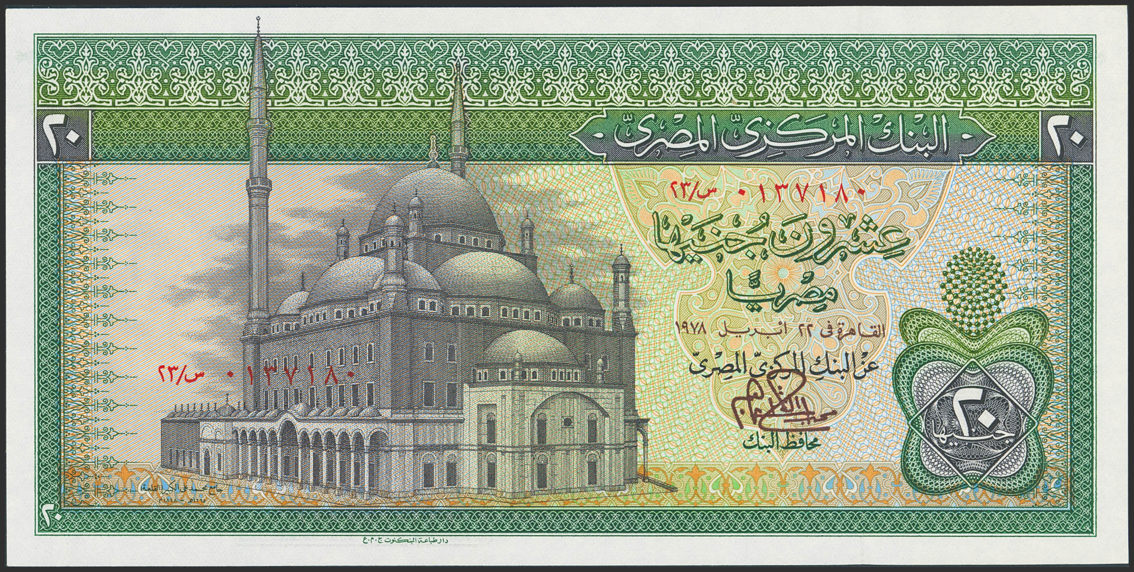English EGYPT. 20 Pounds. (1976ca). (Pick: 48). Uncirculated.