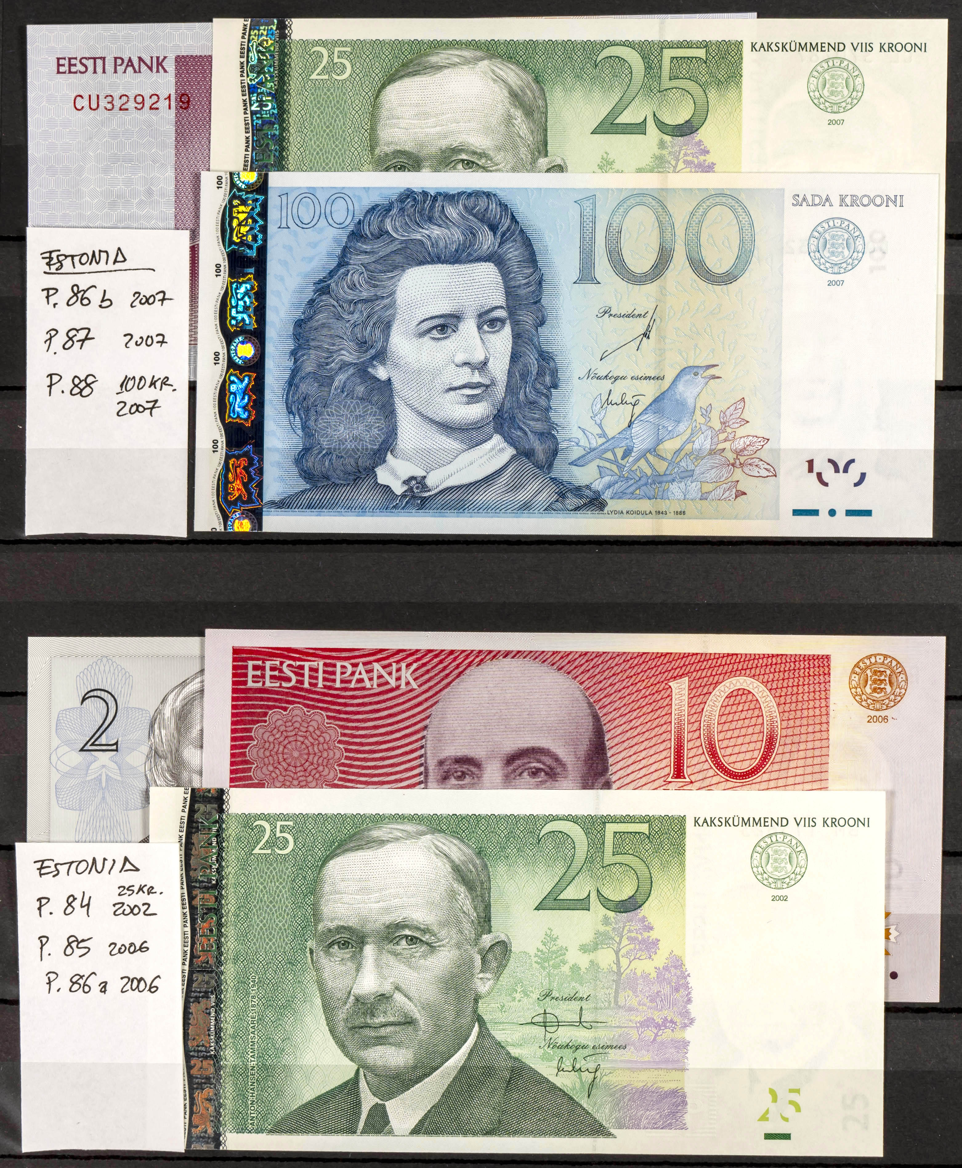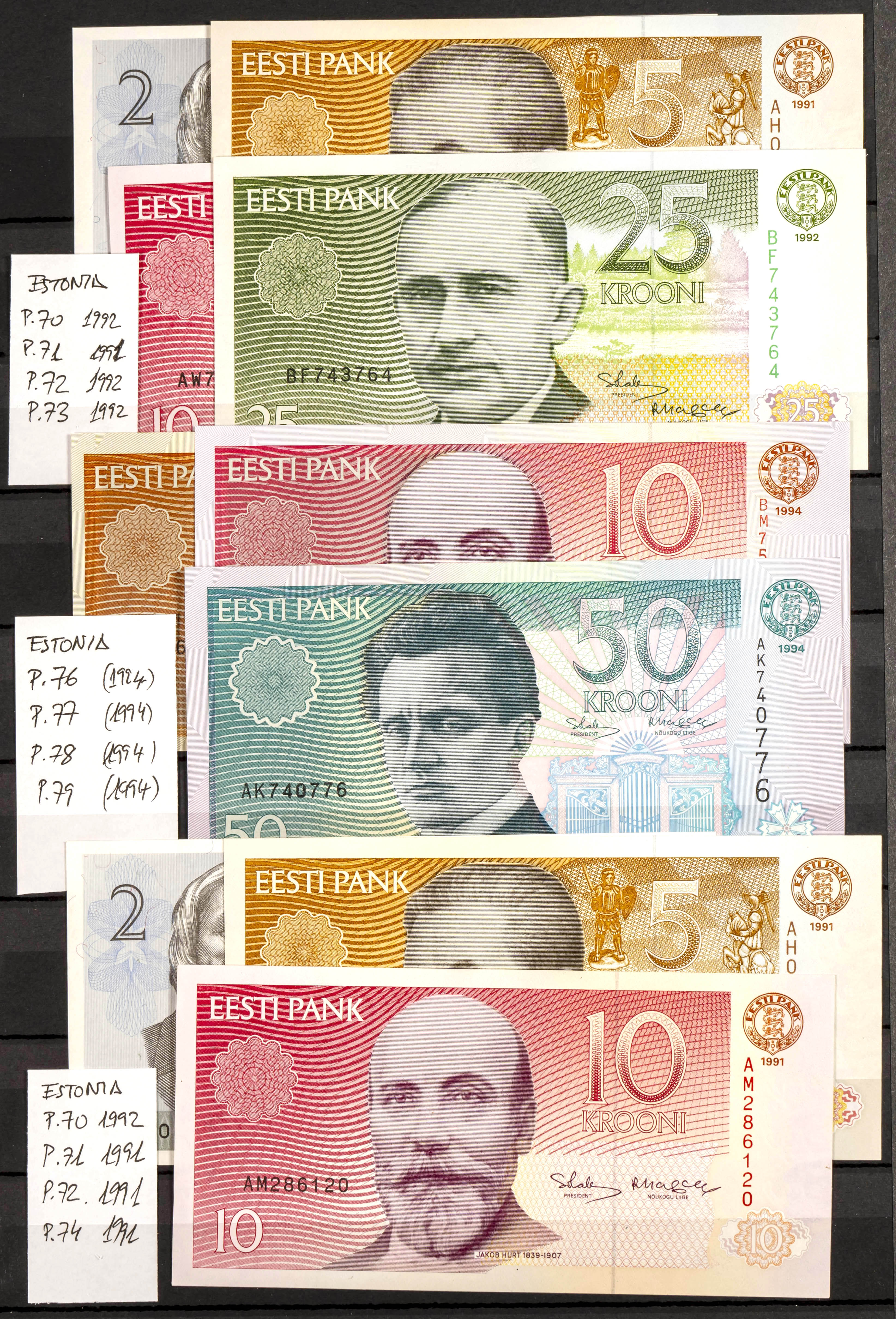 Set of 16 banknotes of Estonia of various issues and most of them nice qualities. TO EXAMINE.