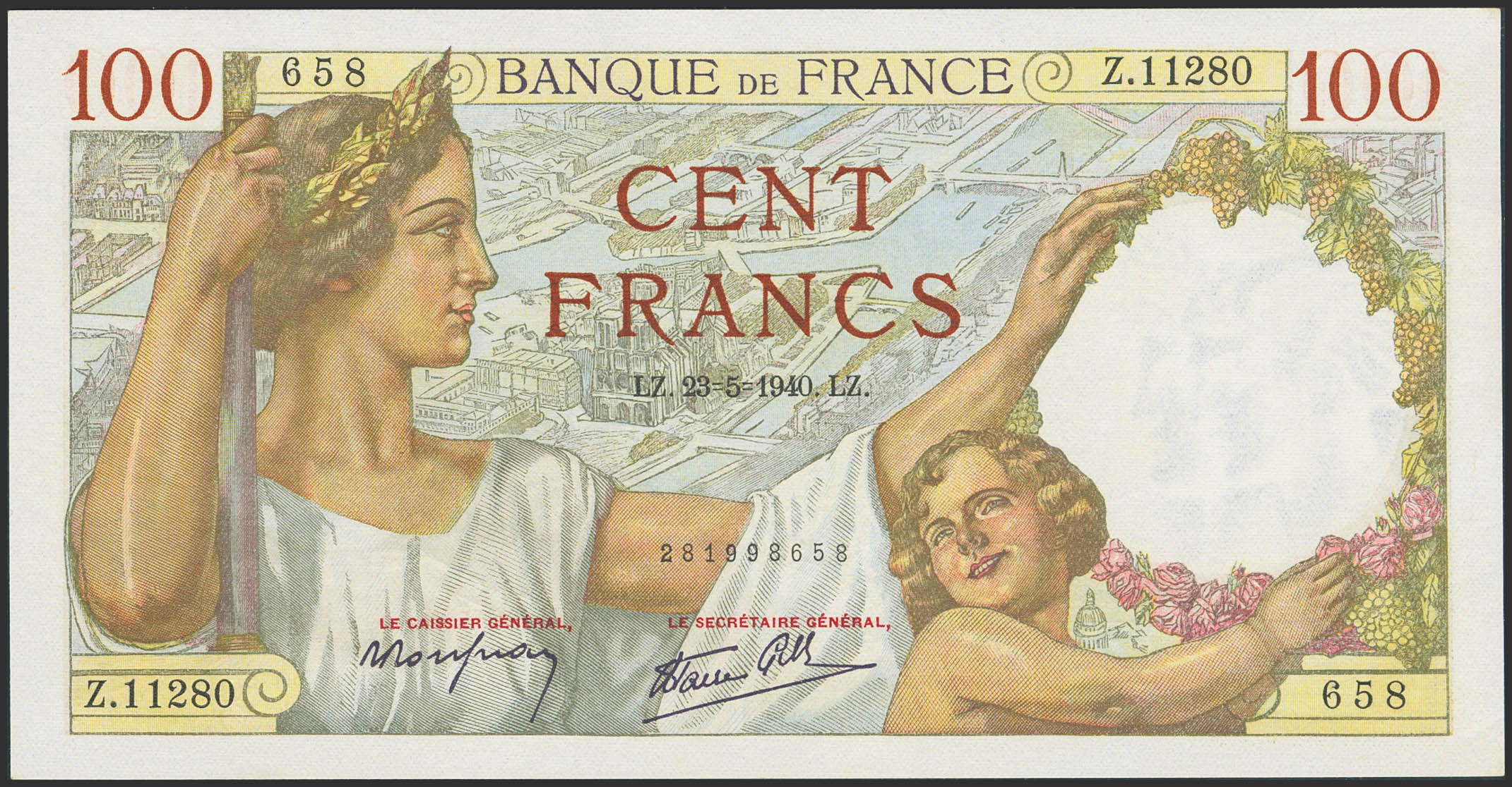 FRANCE. 100 Francs. May 23, 1943. (Pick: 94). Less than Uncirculated.