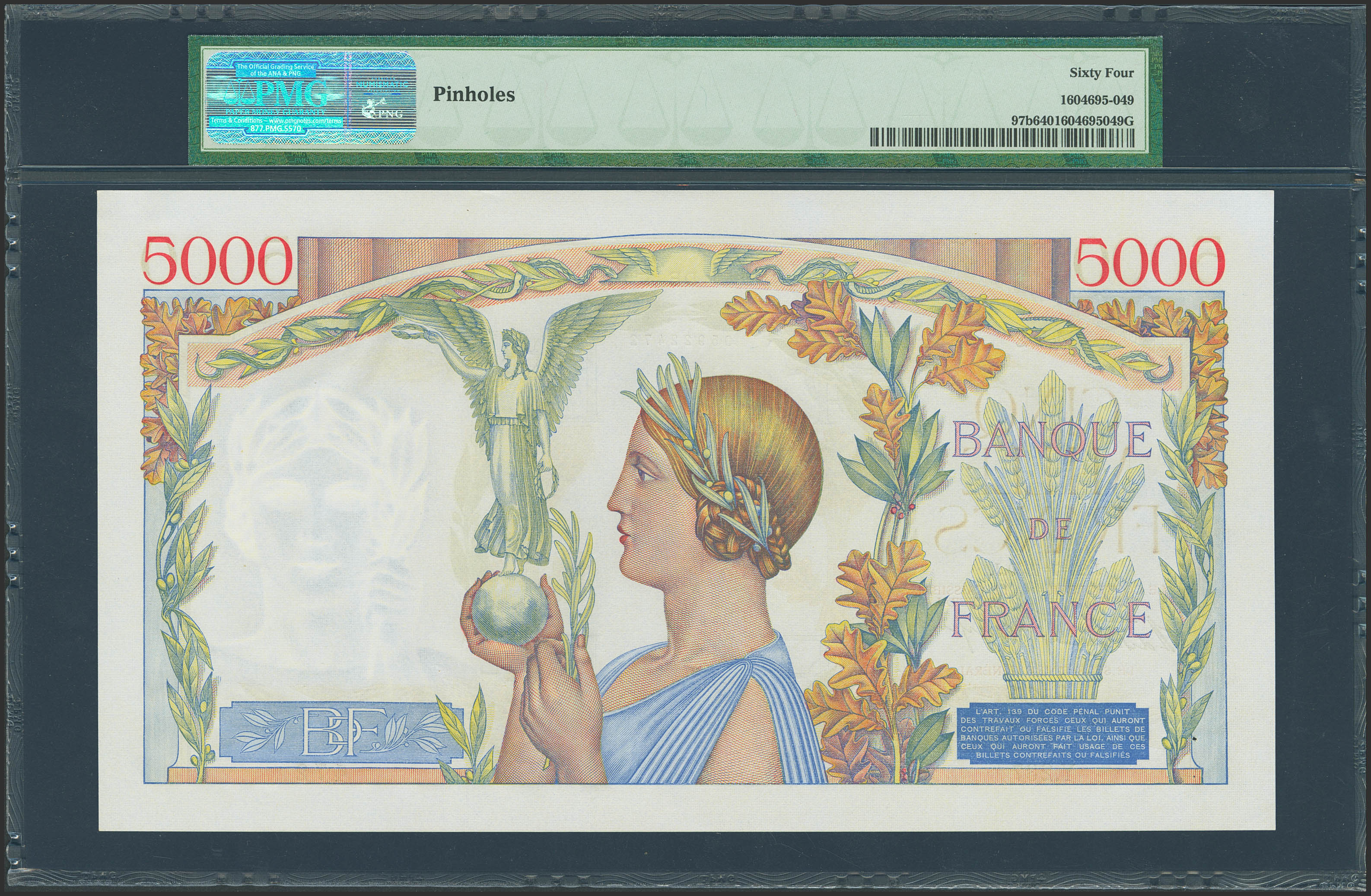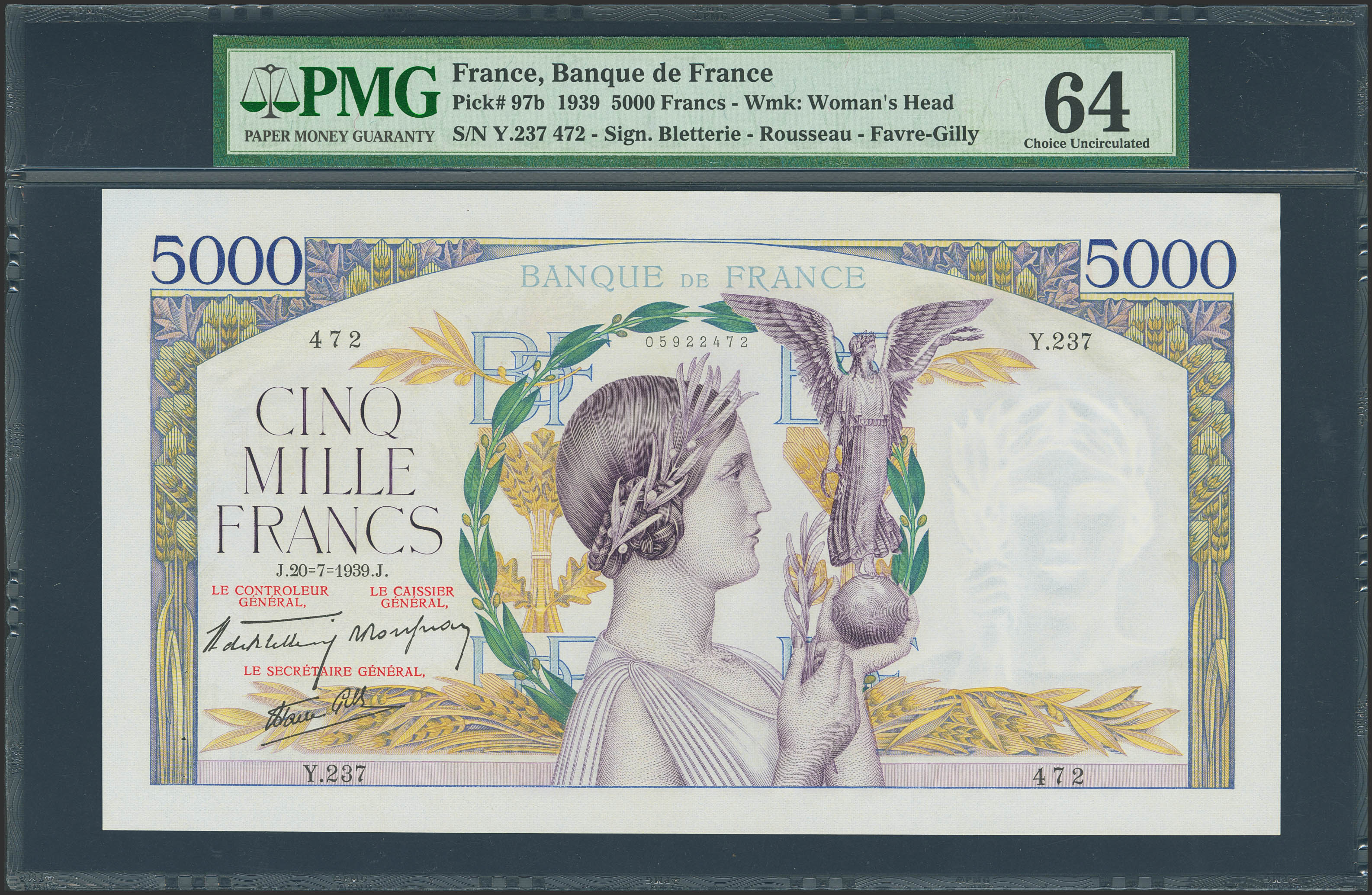 FRANCE. 5000 Francs. 20 July 1939. (Pick: 97b). PMG64 (pinholes).