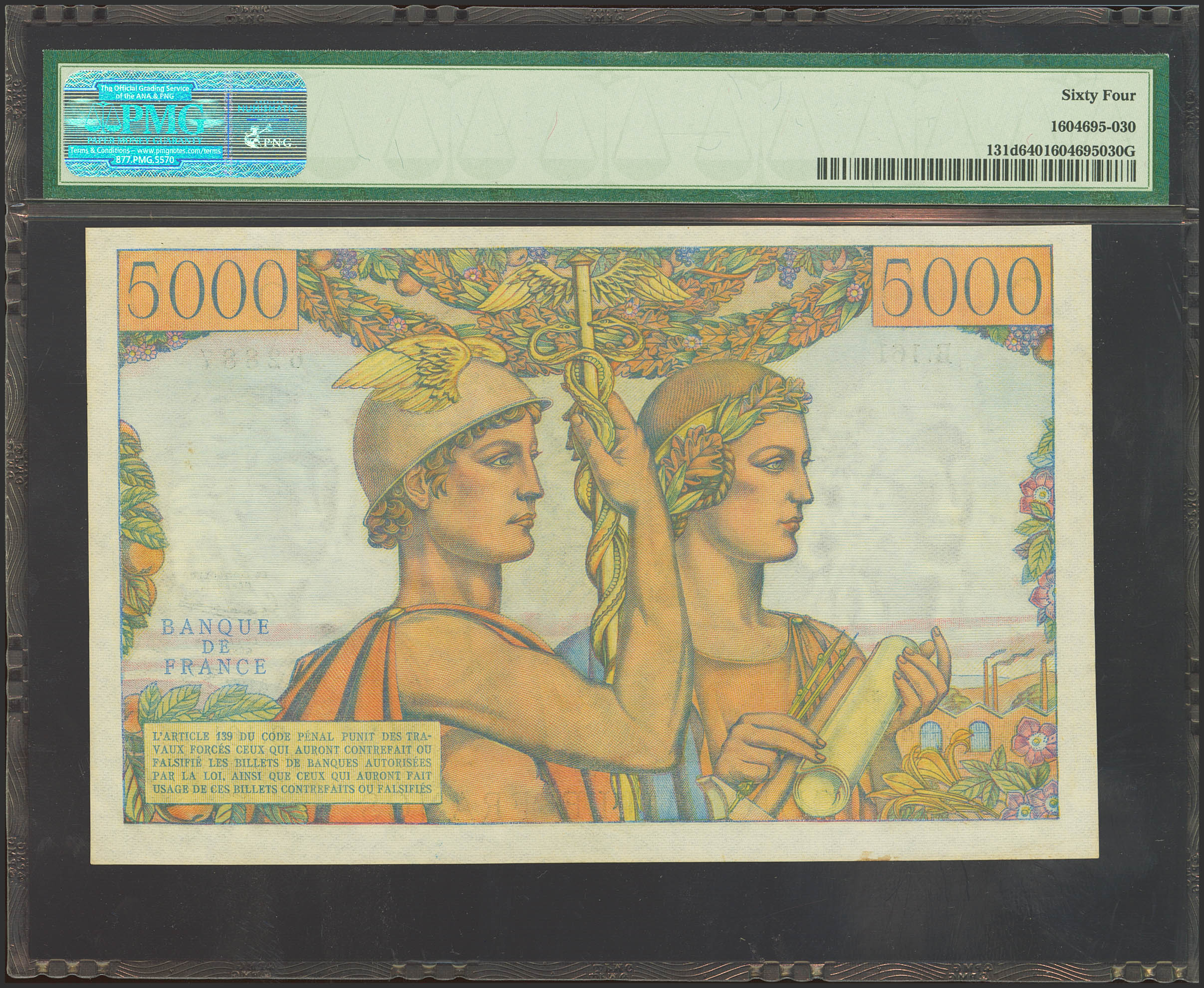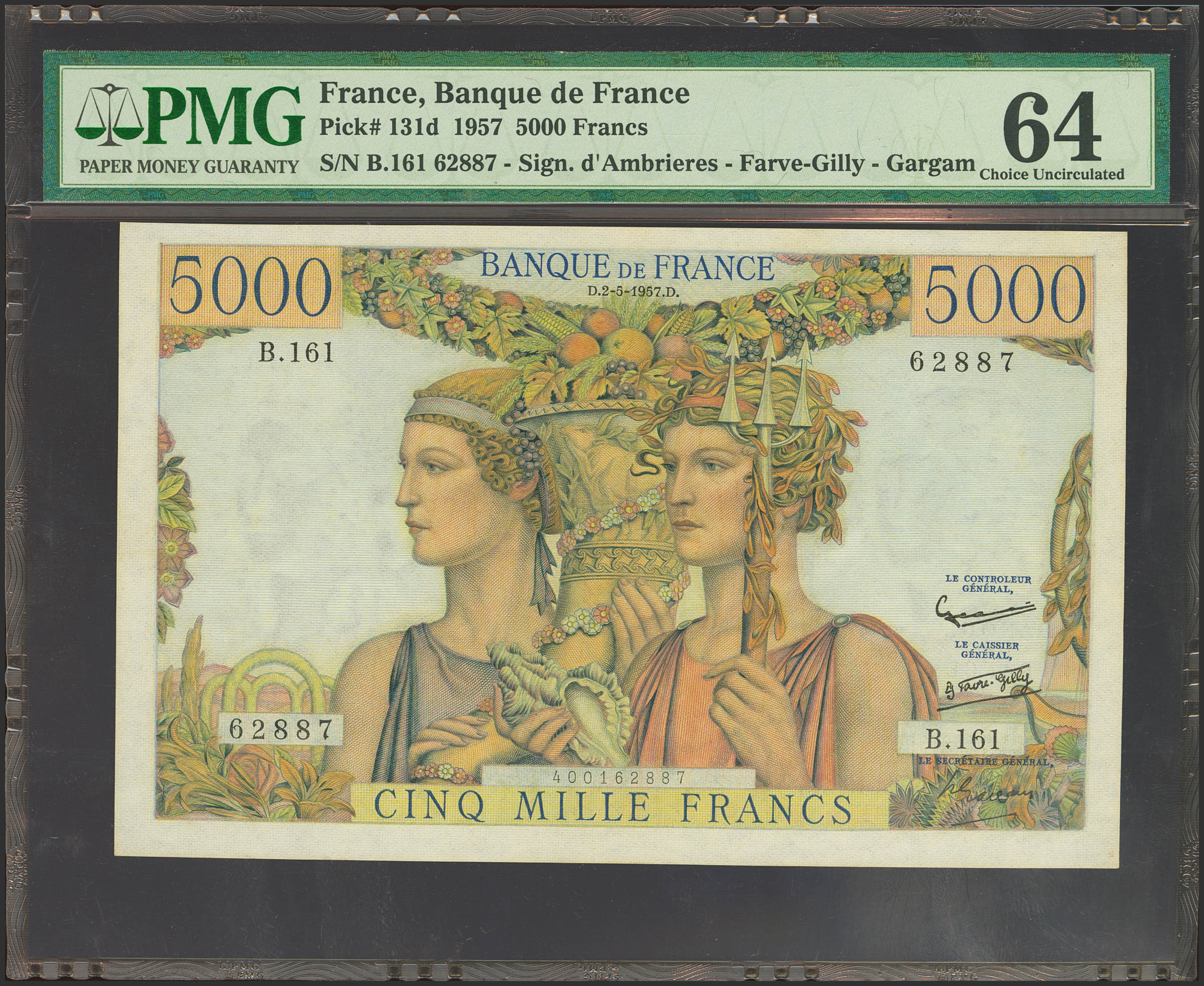 FRANCE. 5000 Francs. 2 May 1957. (Pick: 131d). Extremely rare, especially in this exceptional quality. PMG64.