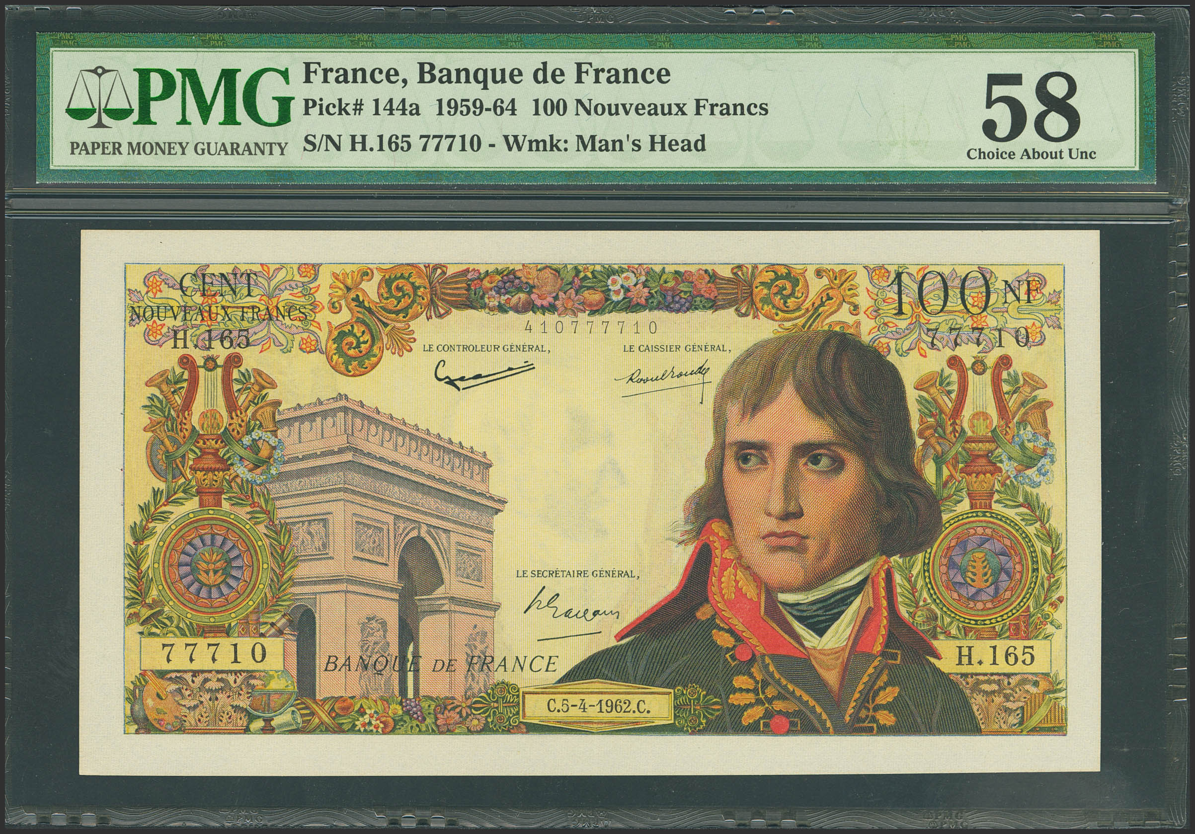 FRANCE. 100 French Nouveaux. April 5, 1962. (Pick: 144a). PMG58.