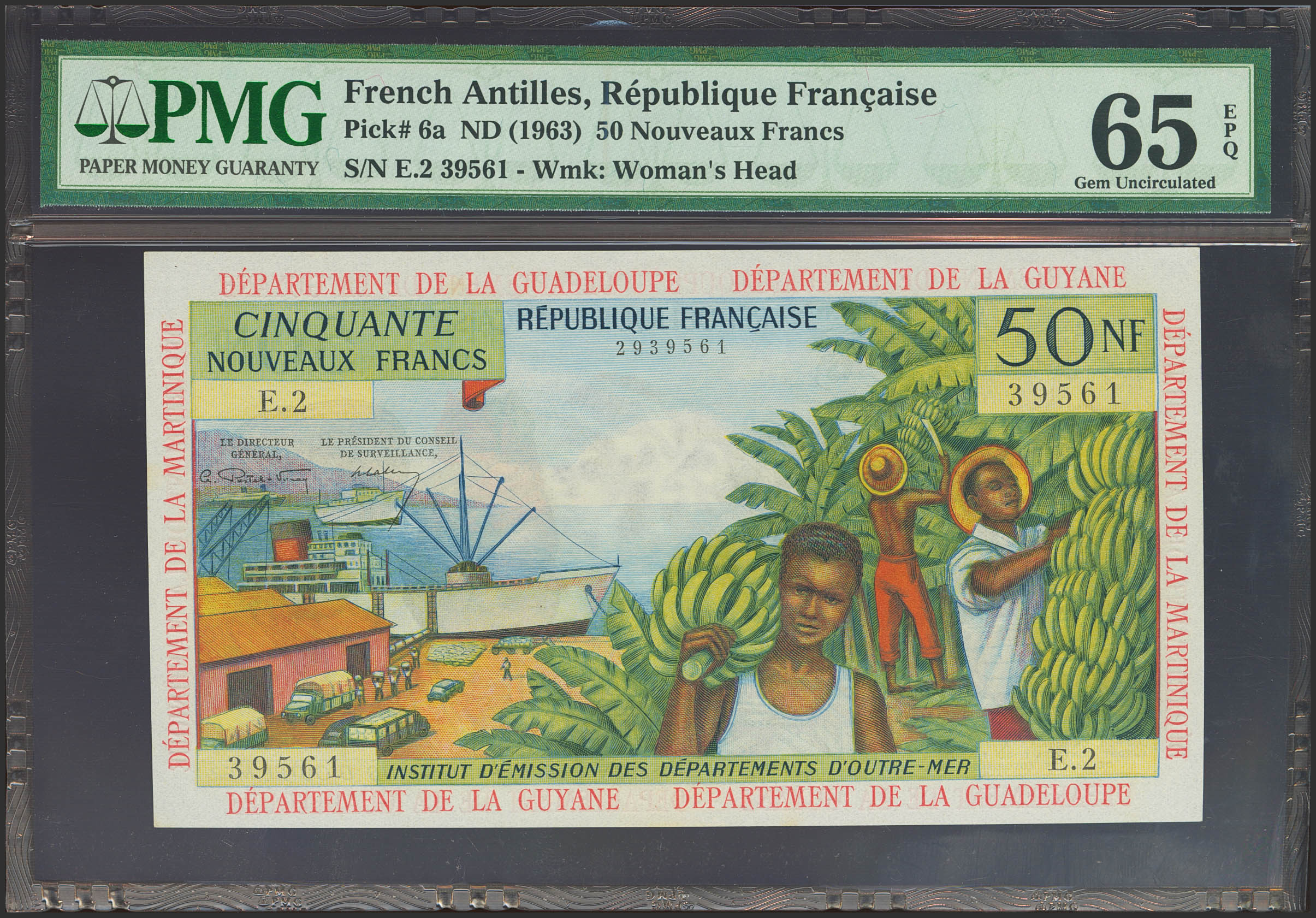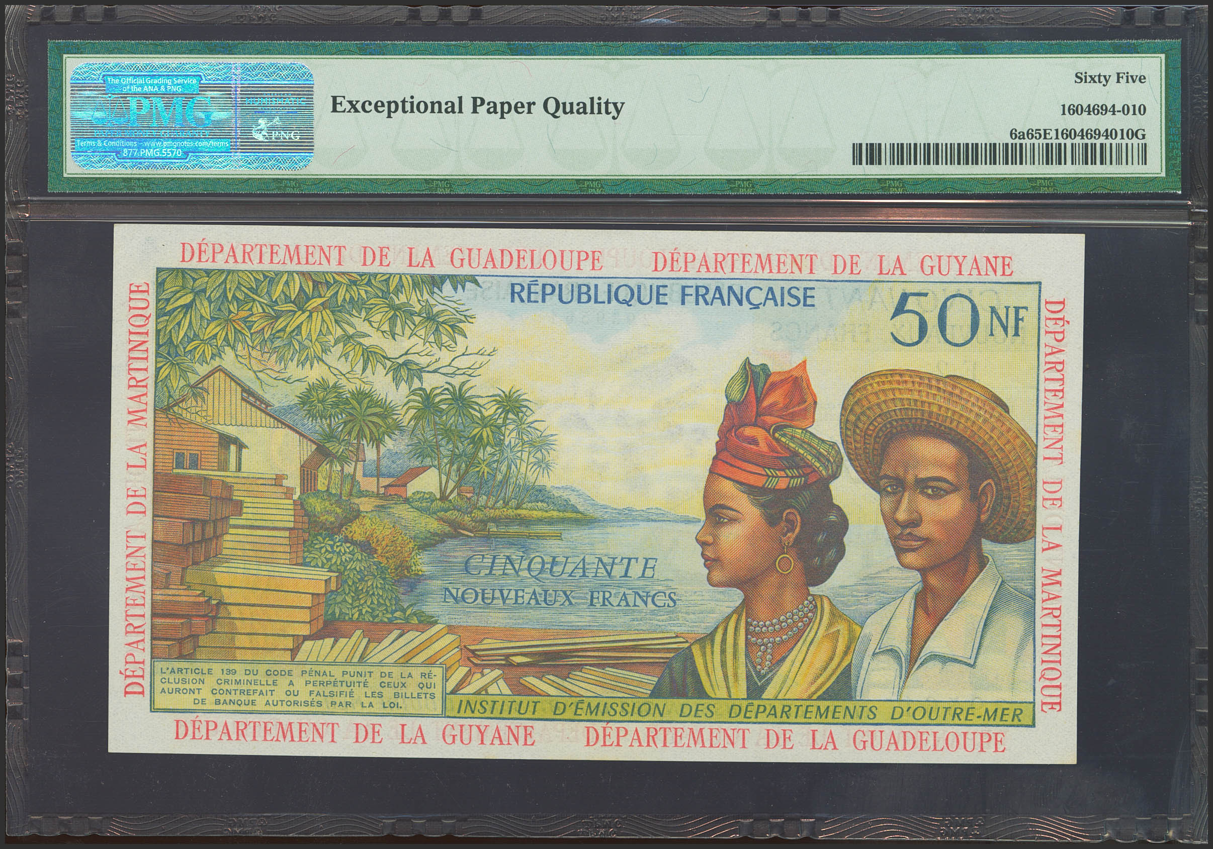 FRENCH ANTILLES. 50 New French. (1963ca). (Pick: 6a). Extremely rare, especially in this exceptional quality. PMG65EPQ.