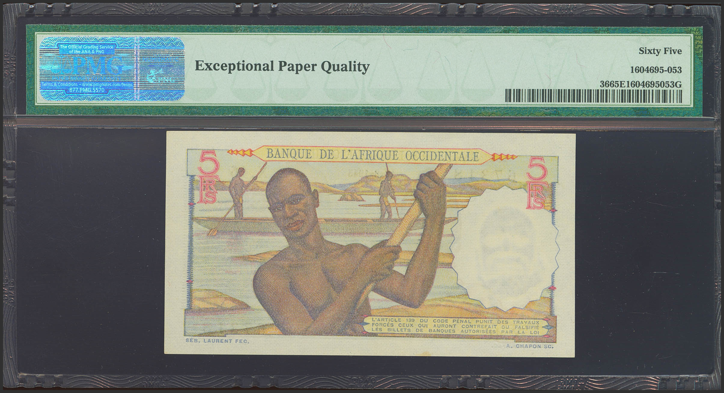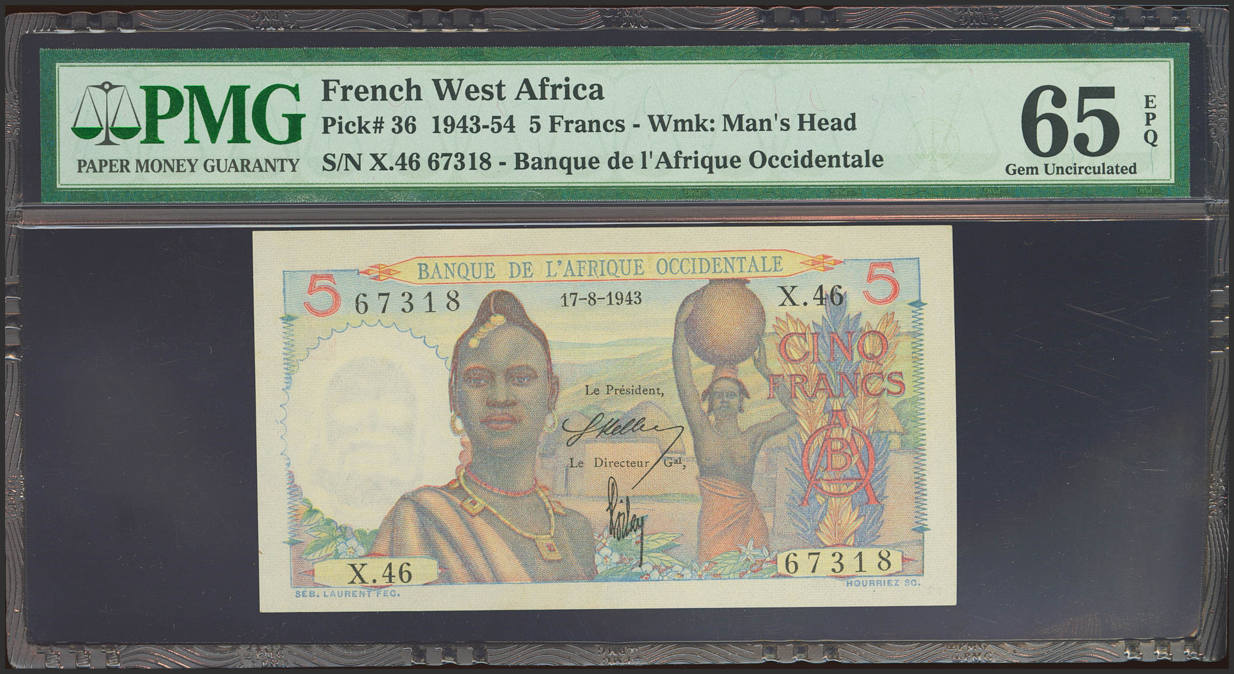 FRENCH WEST AFRICA. 5 French. August 17, 1943. (Pick: 36). PMG65EPQ.