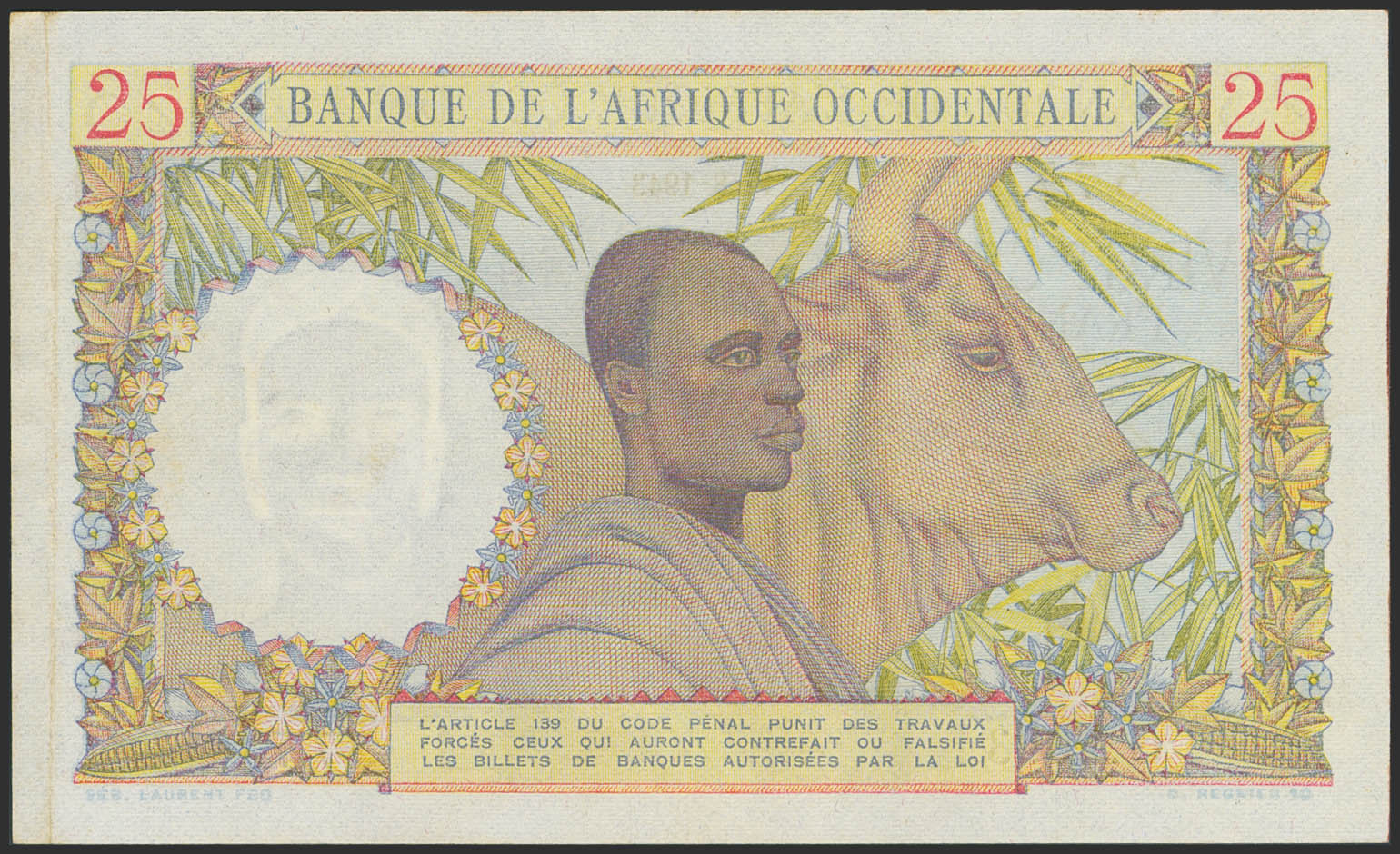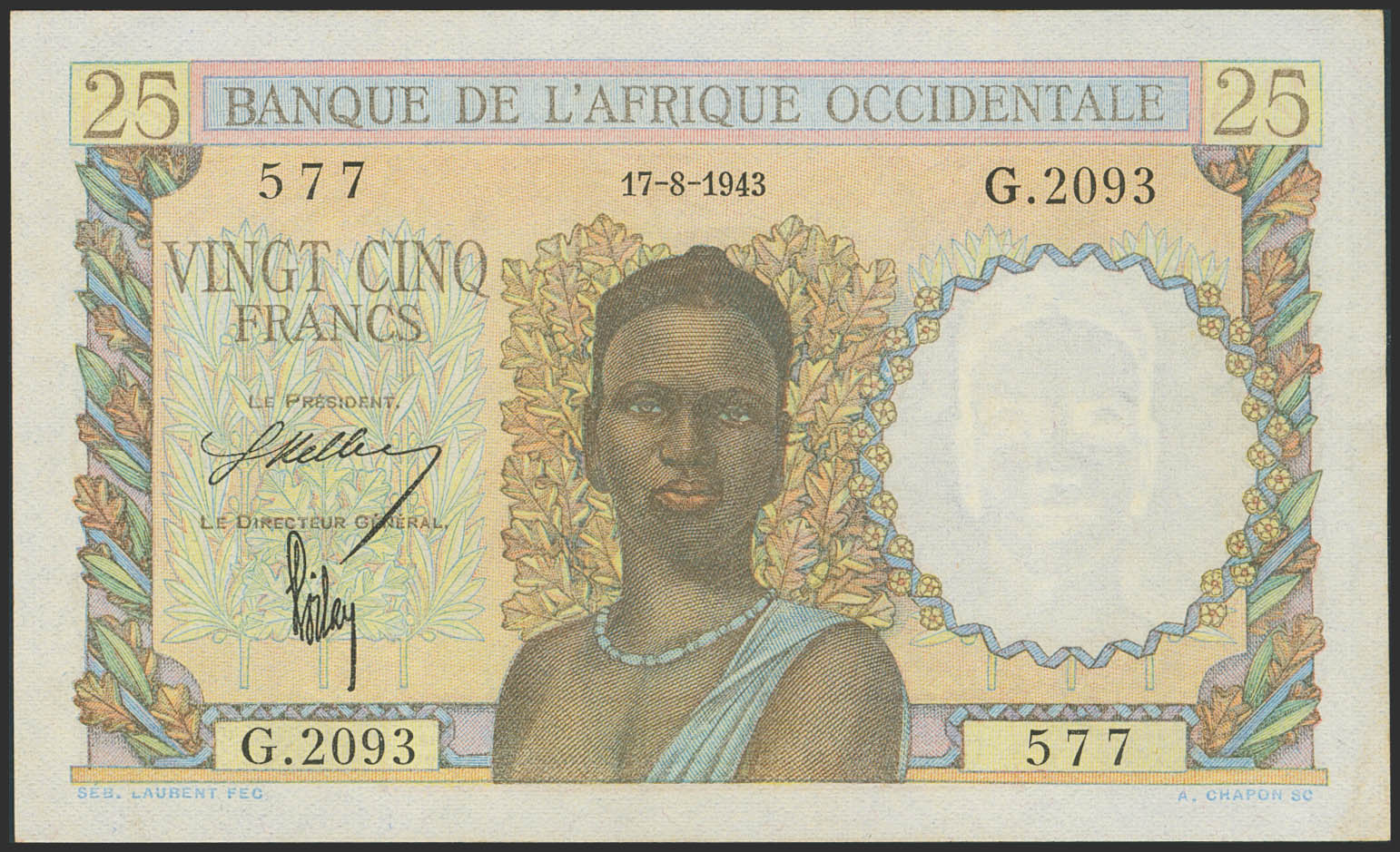 FRENCH WEST AFRICA. 25 Francs. August 17, 1943. (Pick: 38). Extremely Fine.