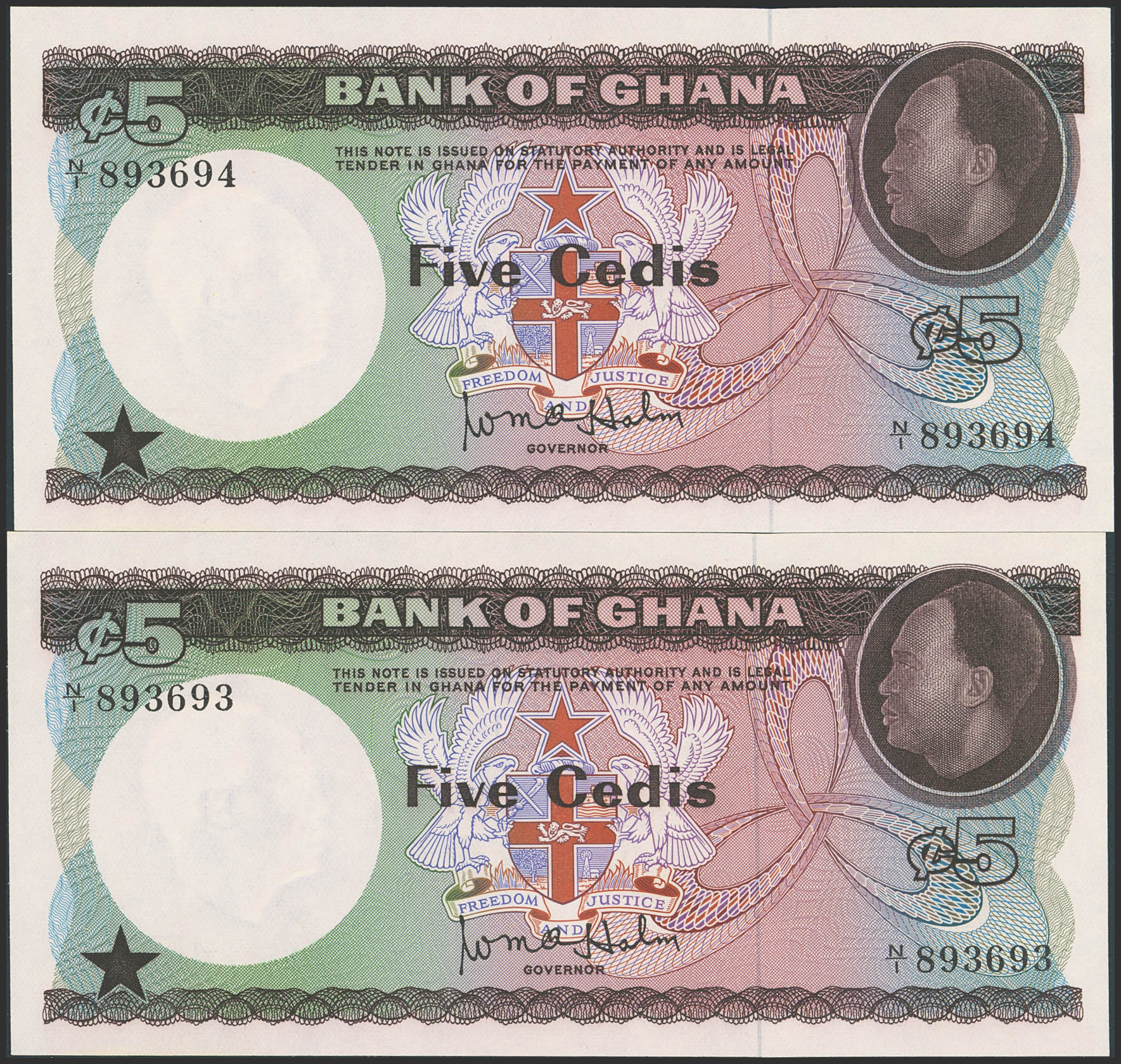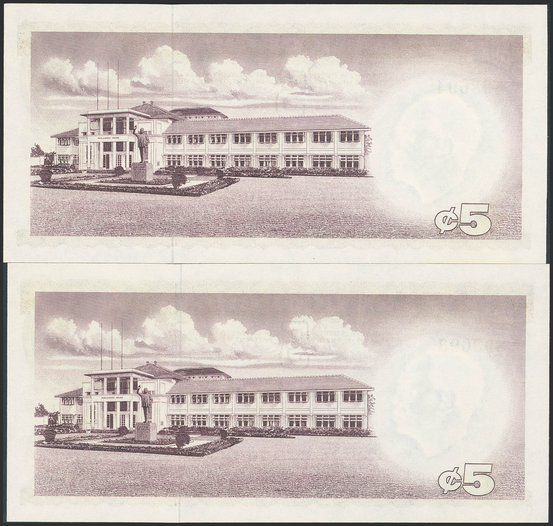 GAHANA. 5 Cedis. Pair correlative. (1965ca). (Pick: 6). Uncirculated.