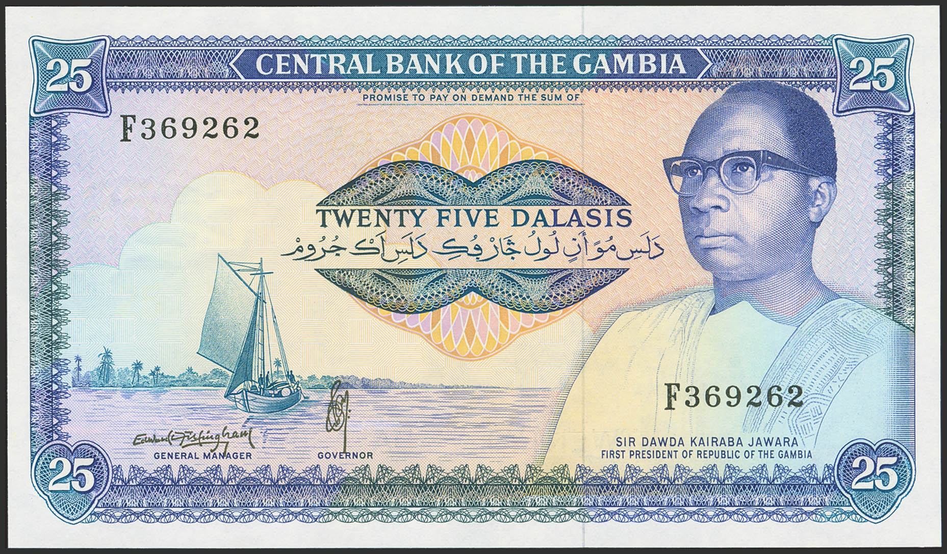 GAMBIA. 25 Dalasis. (1987ca). (Pick: 11c). Uncirculated.