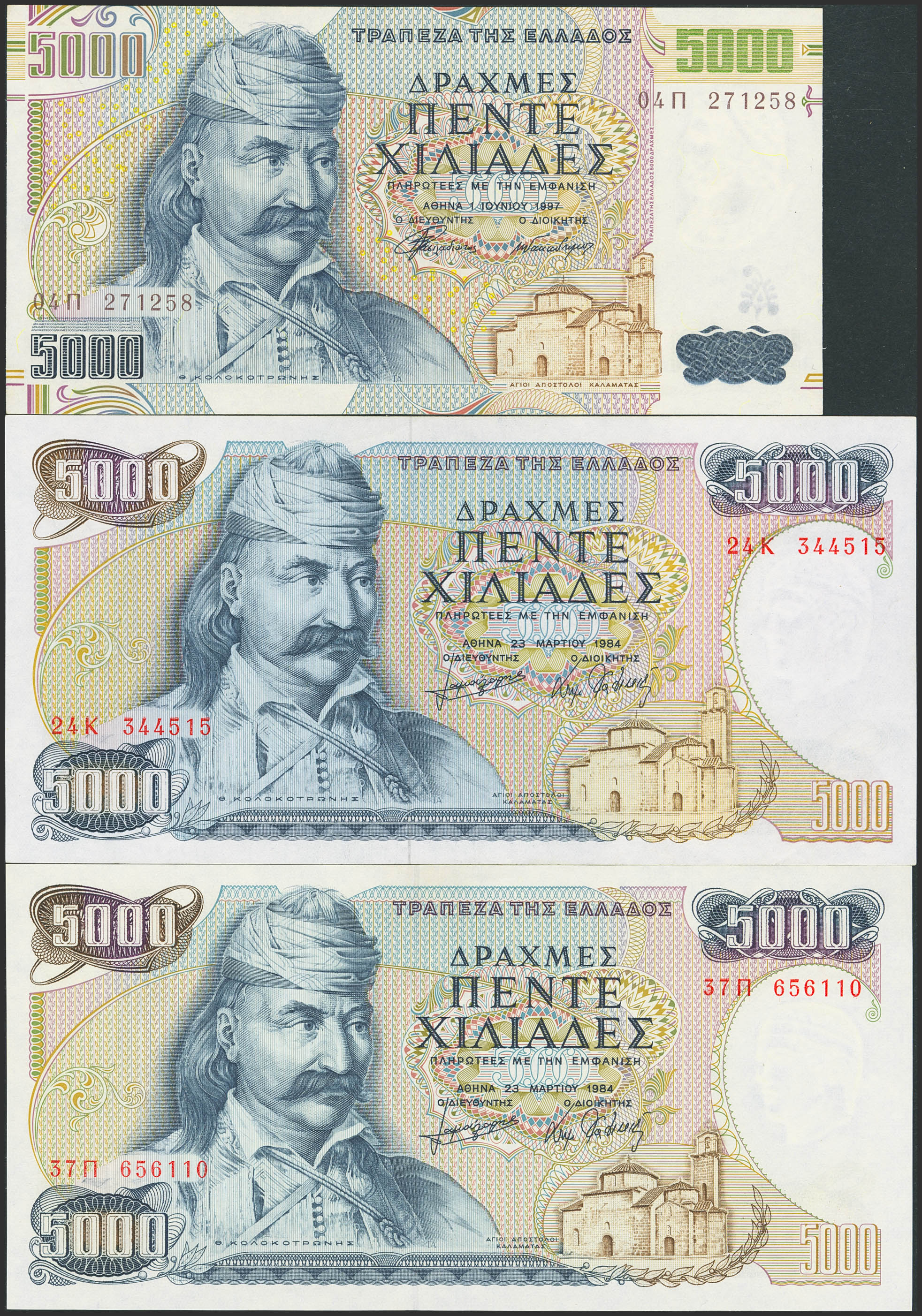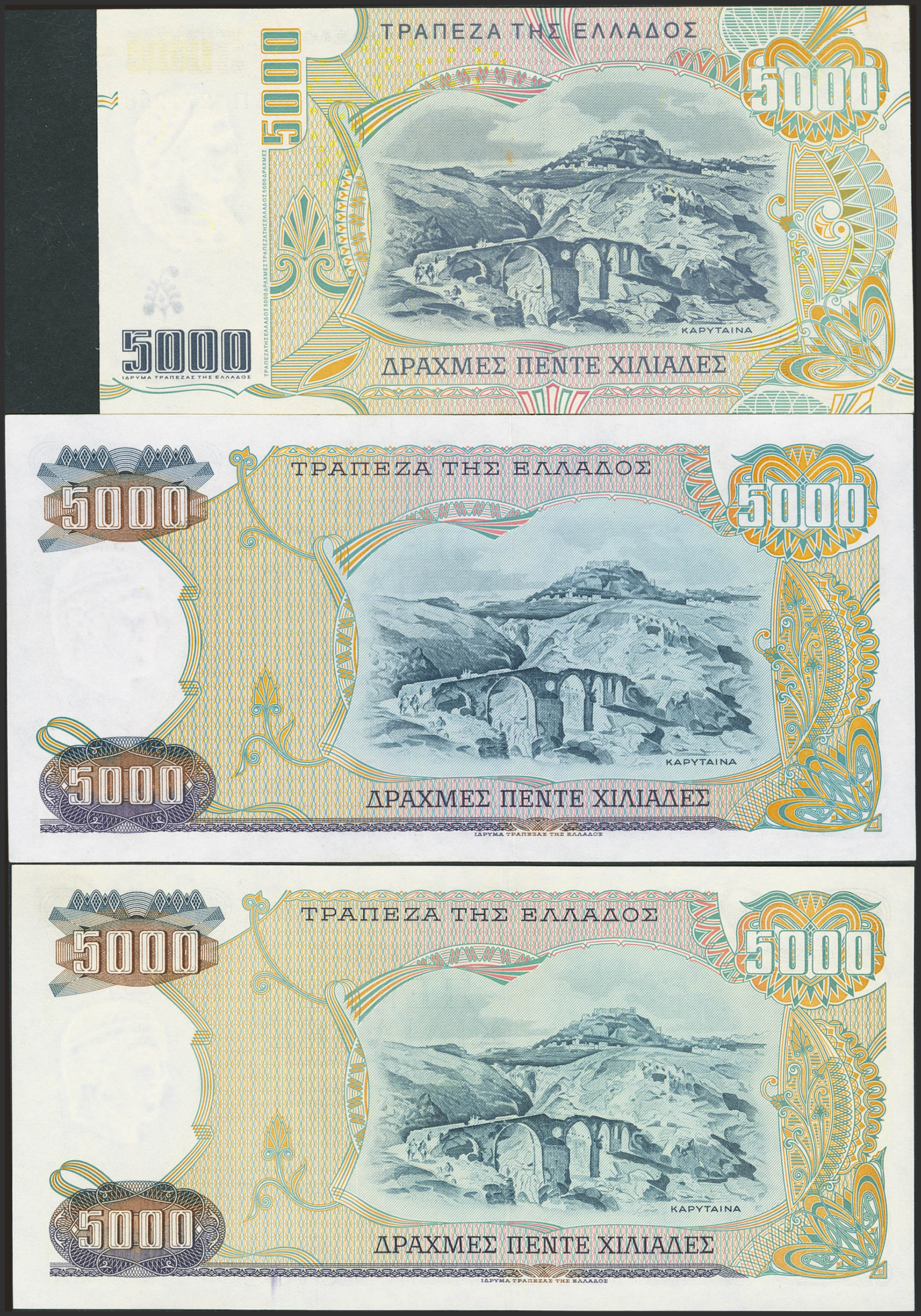 GREECE. 5000 Drachmas. (1984ca). (Pick: 203a(2), 205a). Uncirculated / Less than Uncirculated.
