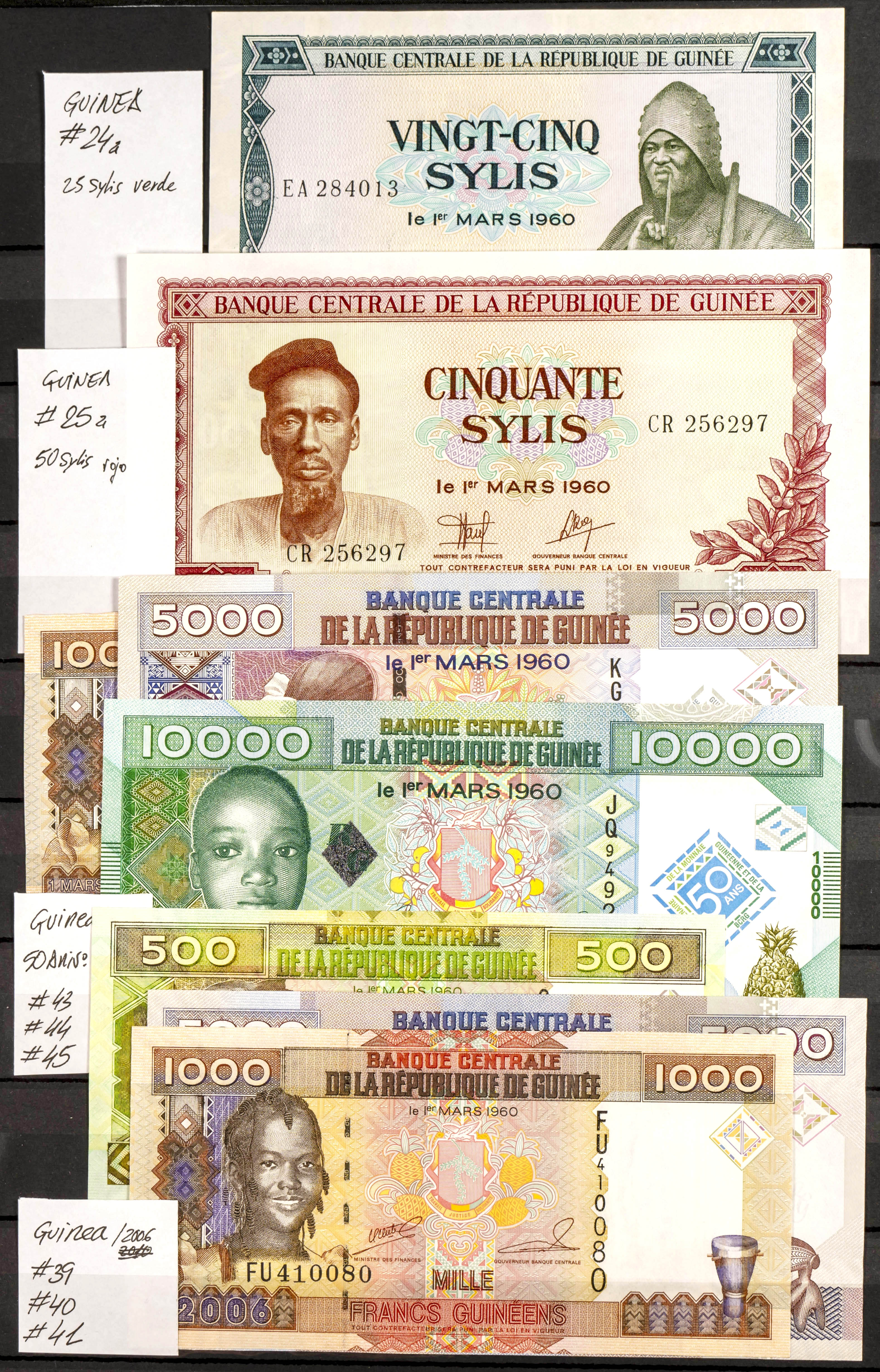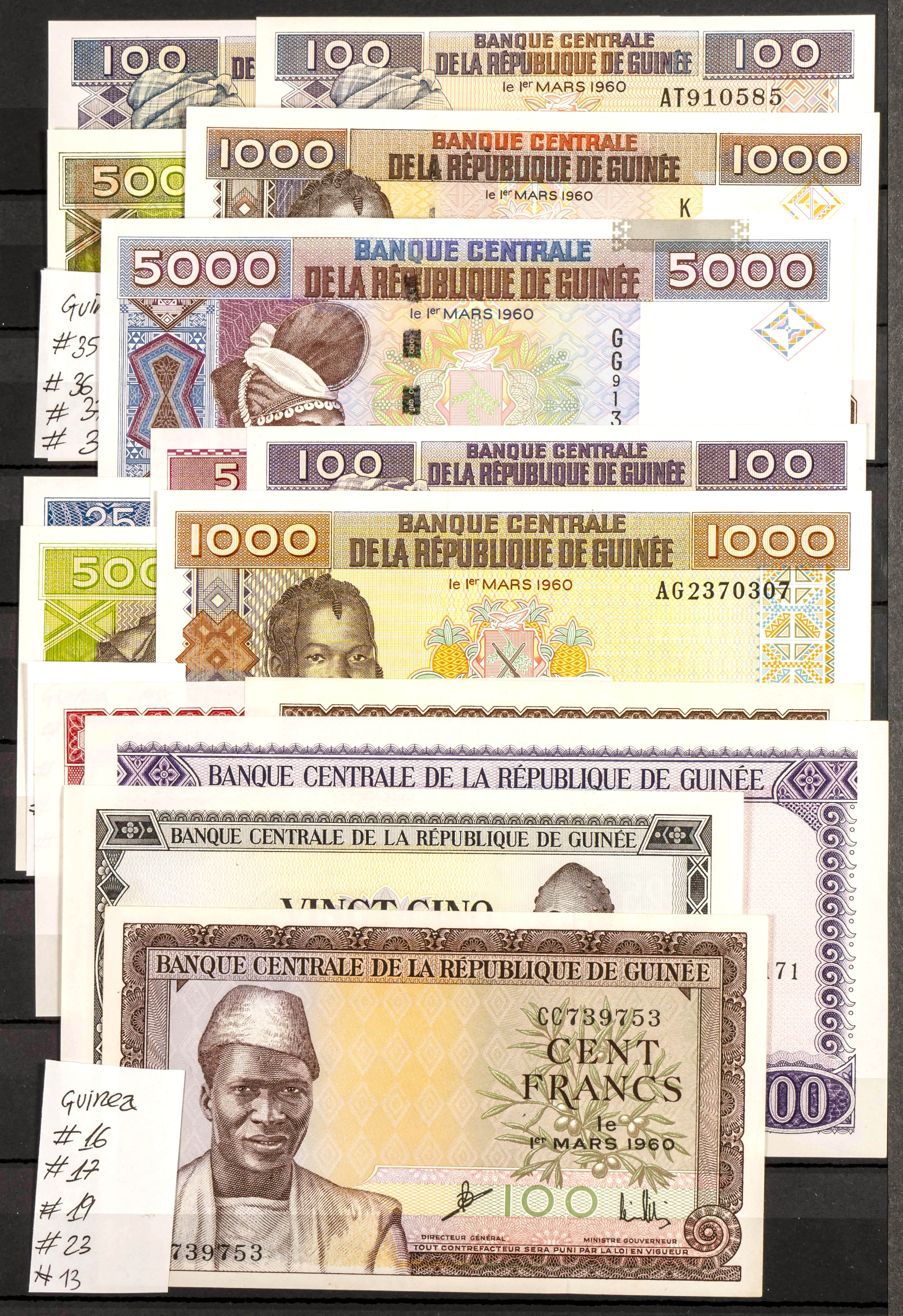 Set of more than 20 banknotes of Guinea of various issues and most of them nice qualities. TO EXAMINE.