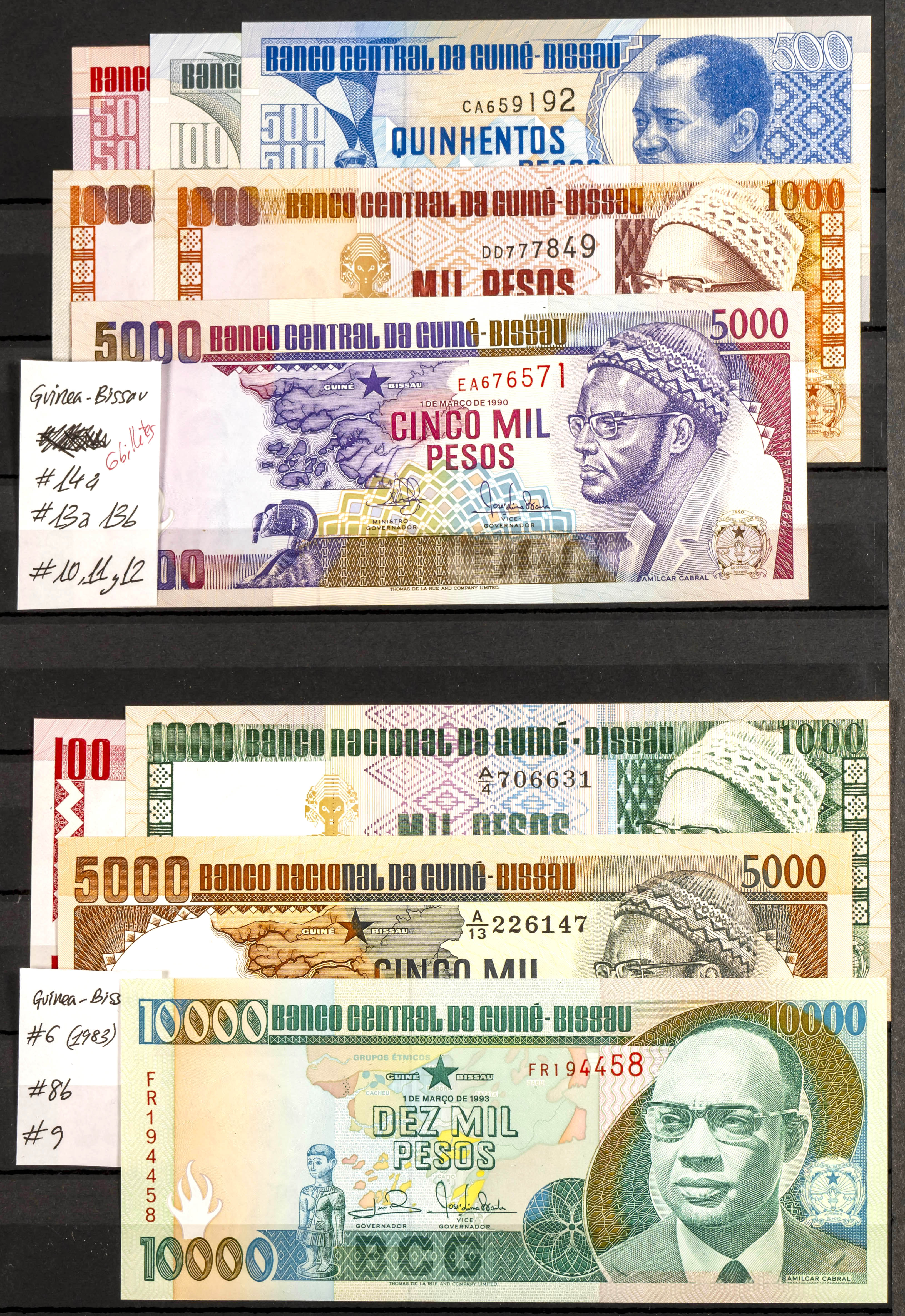 English Set of 10 banknotes of Guinea Bissau of various issues and most of them nice qualities. TO EXAMINE.