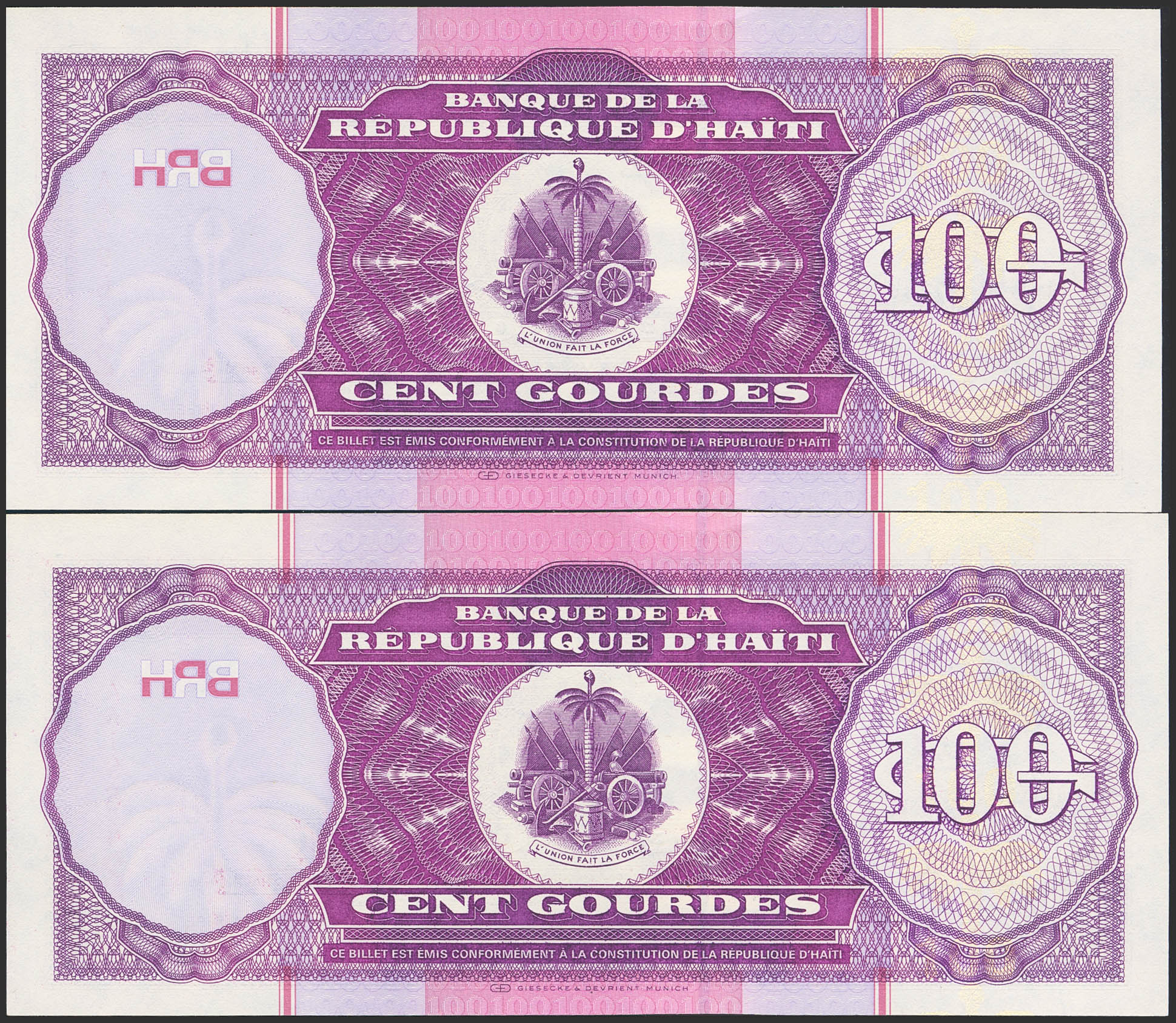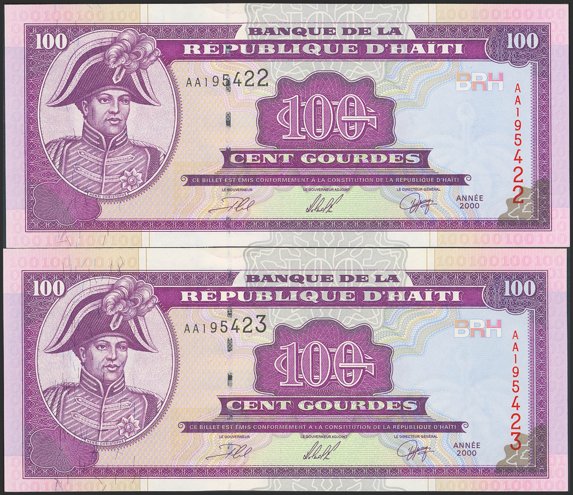 HAITI. 100 Gourdes. Pair correlative. 2000. (Pick: 268). Uncirculated.