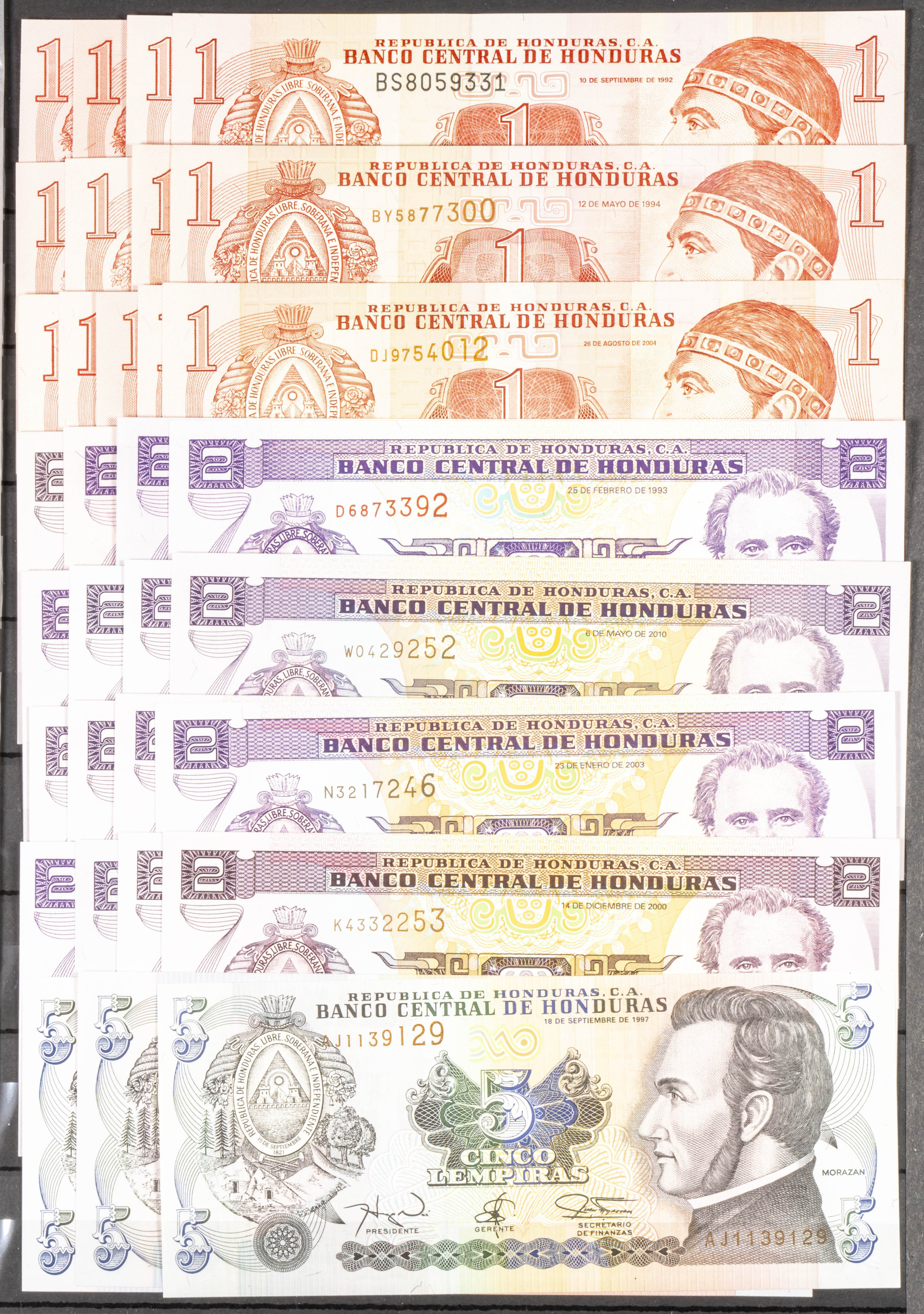 VERY INTERESTING SET of more than 65 banknotes of Honduras of various issues and most of them nice qualities. TO EXAMINE.